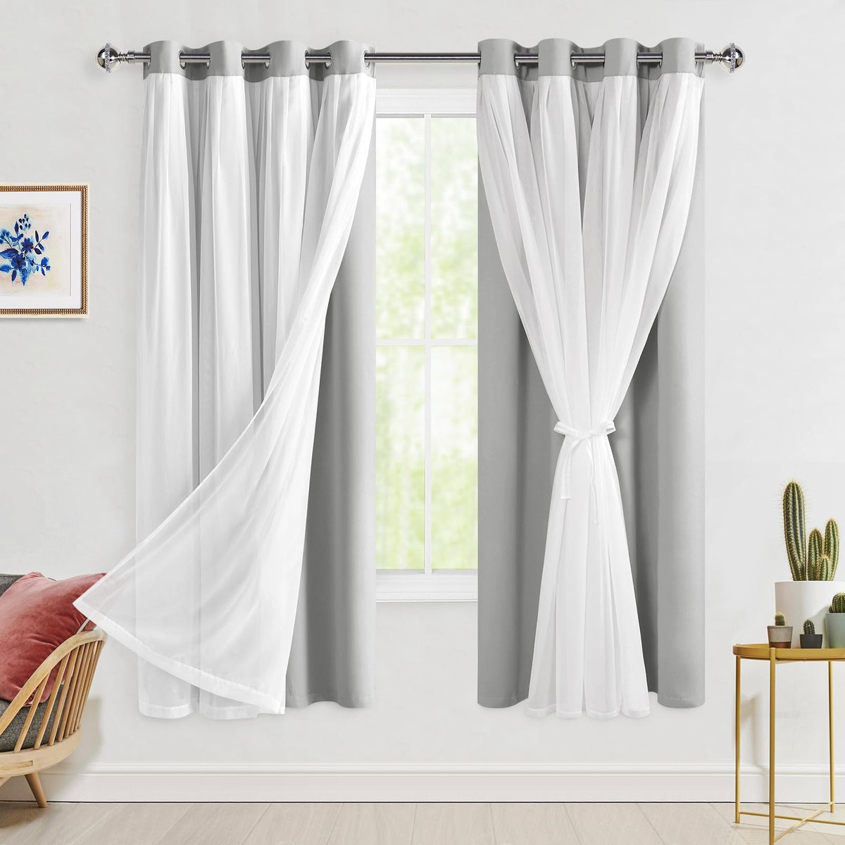 Hiasan Blackout Curtains With Sheer Overlay, Thermal Insulated Privacy Double Layer Mix & Match Window Curtains For Girls Bedroo