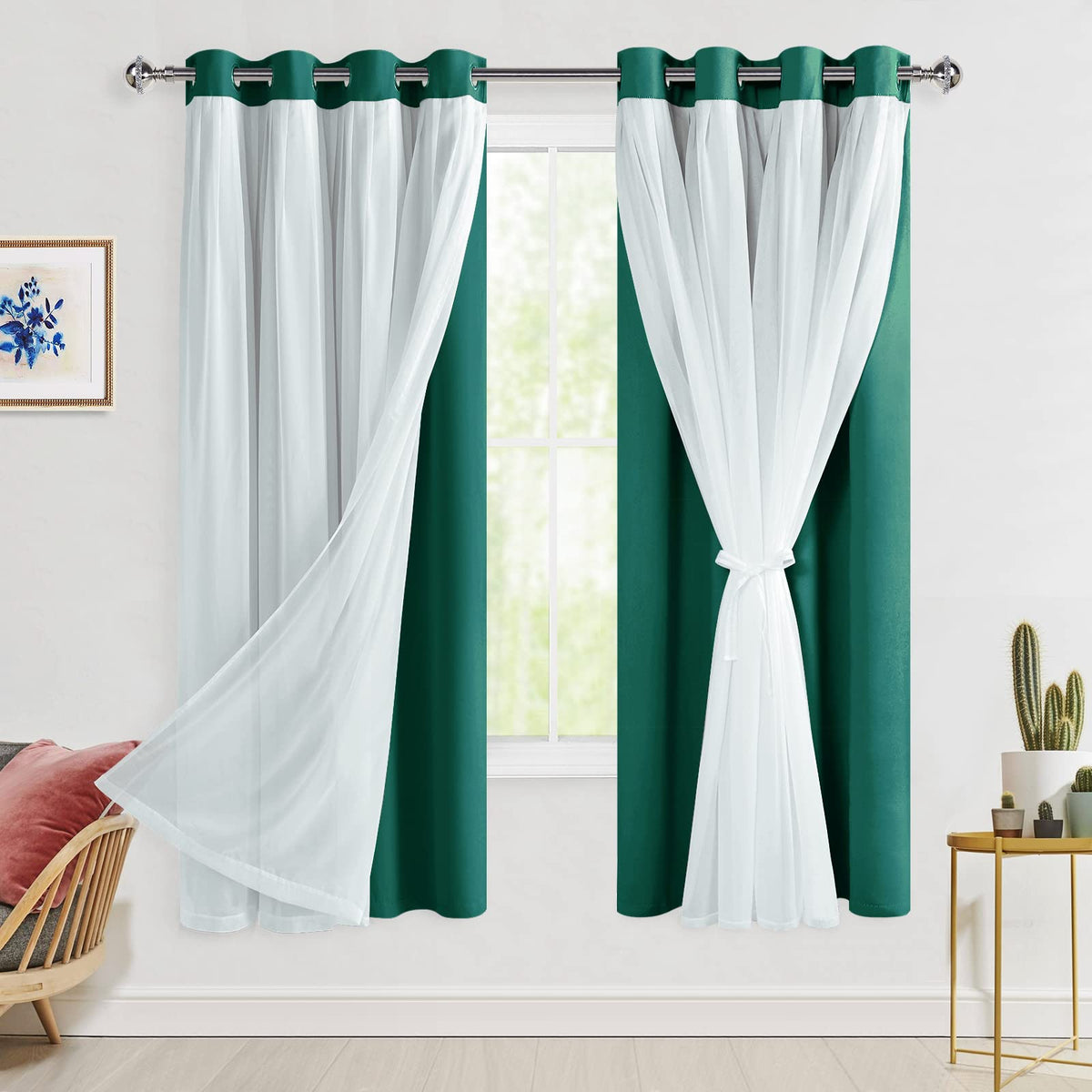 Hiasan Blackout Curtains With Sheer Overlay, Thermal Insulated Privacy Mix & Match Double Layer Window Curtains For Girls Bedroo