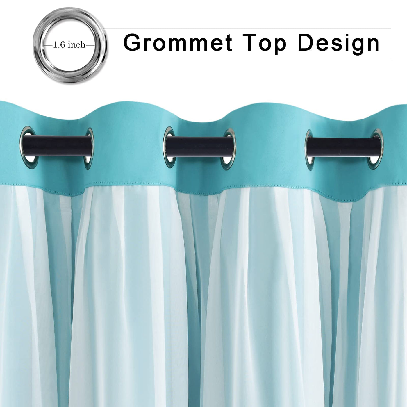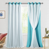 Hiasan Blackout Curtains With Sheer Overlay, Thermal Insulated Sun Blocking Grommet Window Curtains For Bedroom, Living Room, Ki