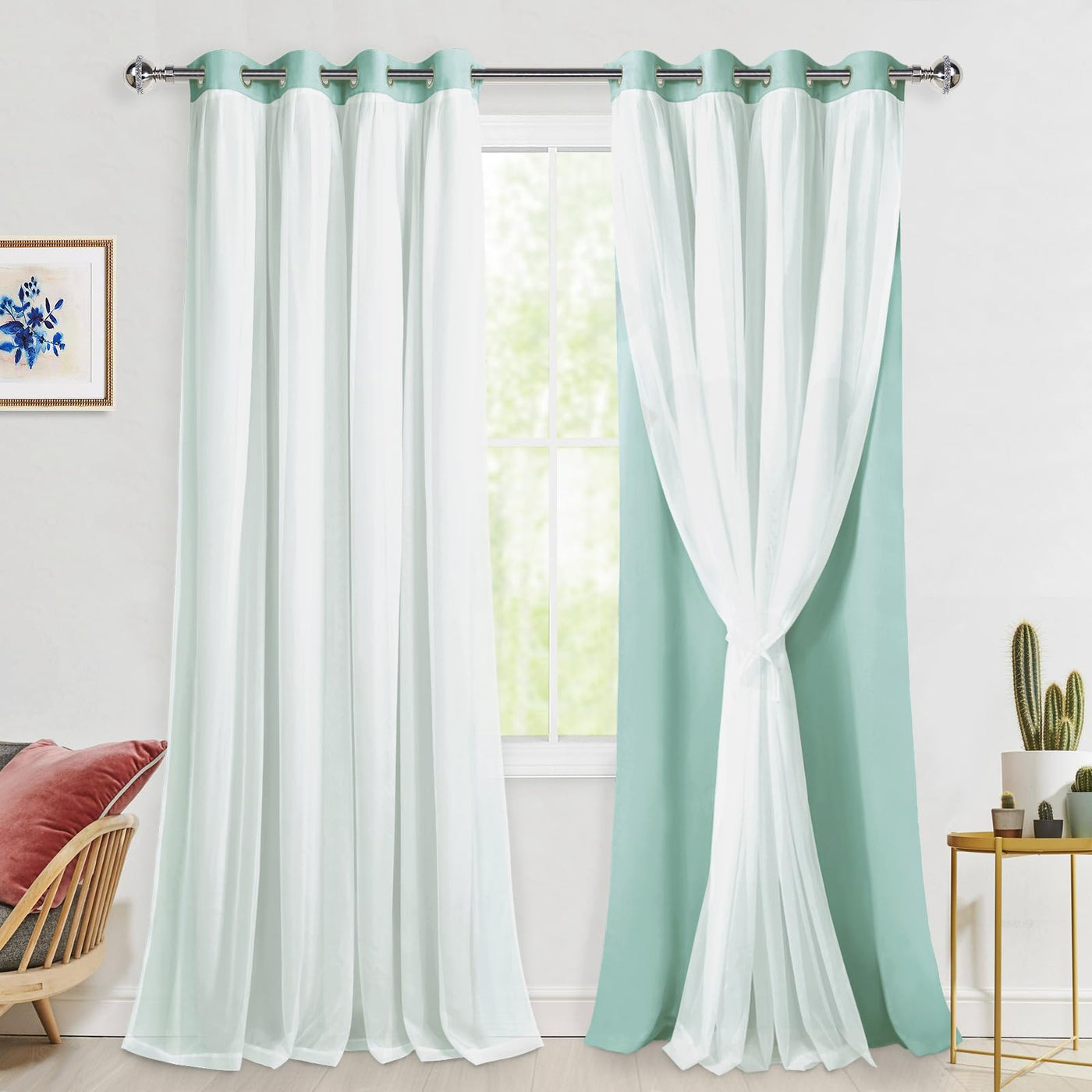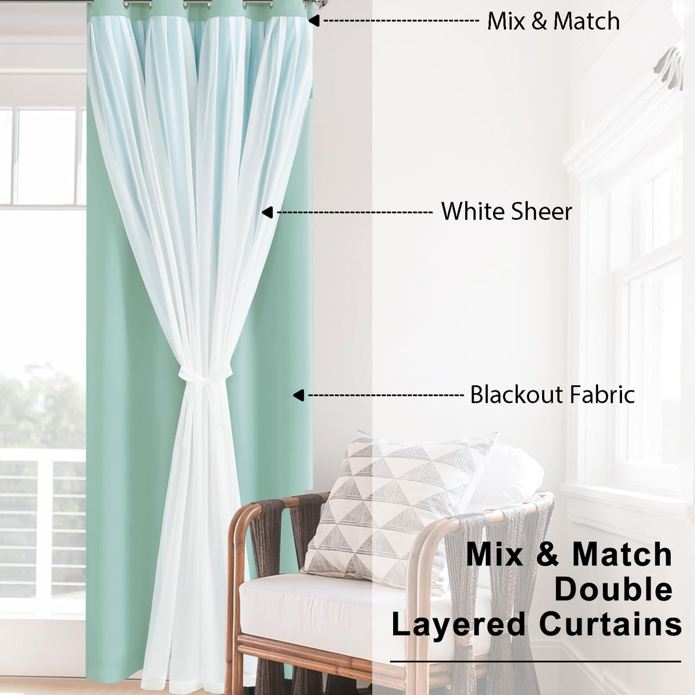 Hiasan Blackout Curtains With White Sheer, Mix & Match Double-Layer Thermal Insulated Sun Blocking Grommet Window Curtains For B