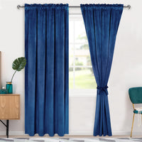 Hiasan Blue Velvet Curtains 90 Inches-Blackout Thermal Insulated Solid Soft Curtains For Bedroom Living Room Rod Pocket Room Dar