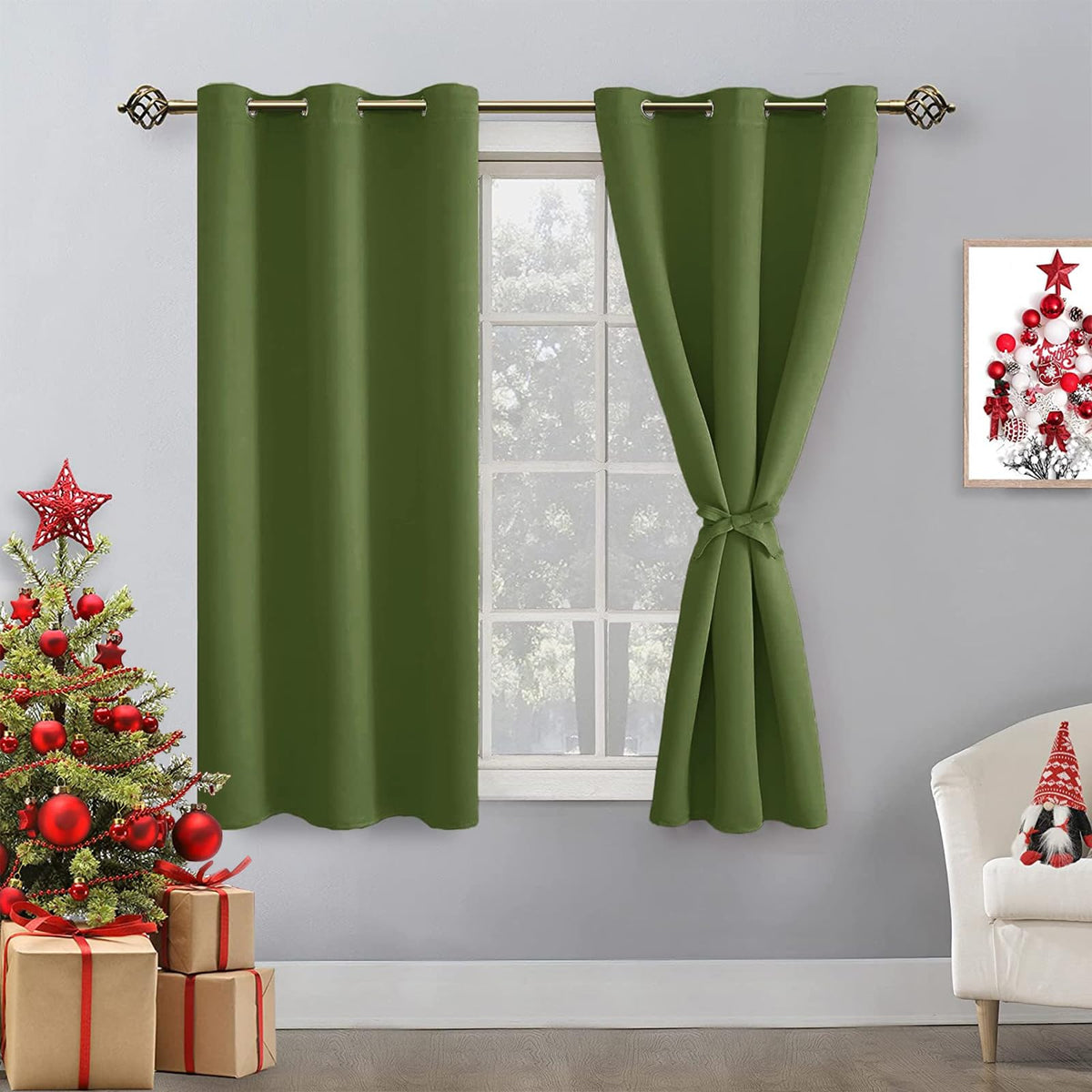 Hiasan Christmas Blackout Curtains For Bedroom - Thermal Insulated & Energy Saving Window Curtains For Living Room, 2 Drape Panels Sewn With Tiebacks, Olive Green, 42 X 54 Inch