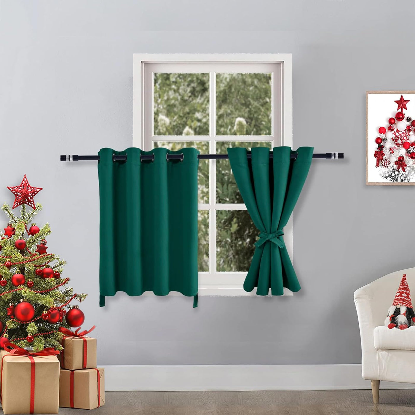 Hiasan Christmas Rv Blackout Curtains For Bedroom, 52 X 30 Inches Long - Thermal Insulated & Energy Saving Window Curtains For Living Room, 2 Drape Panels Sewn With Tiebacks, Hunter Green
