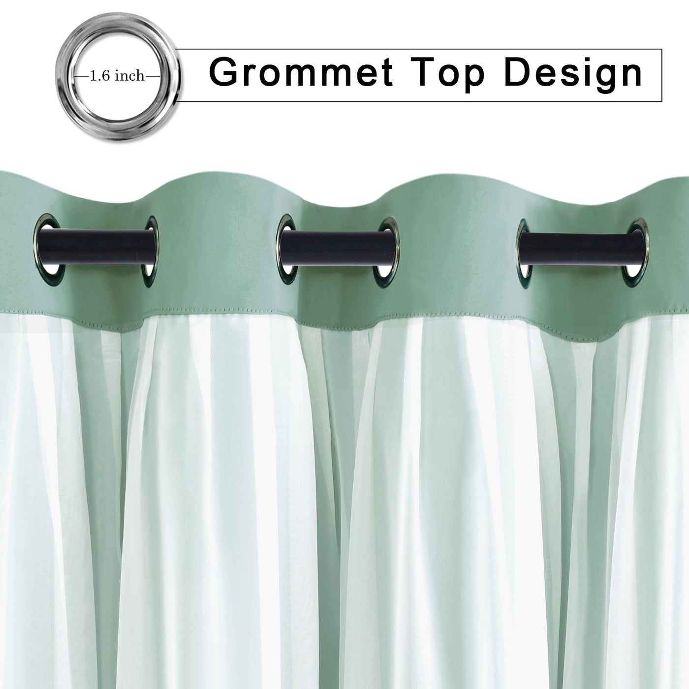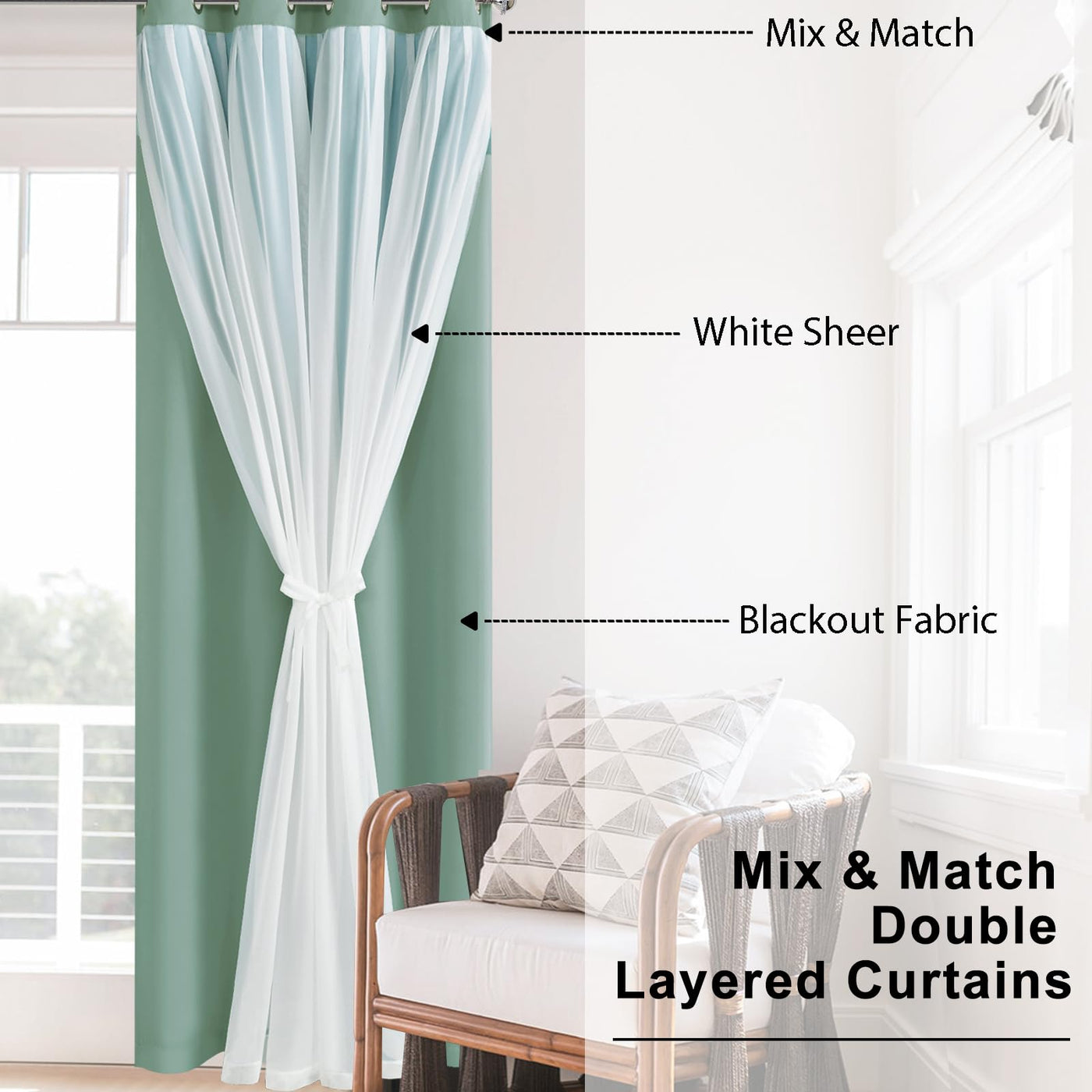 Hiasan Double Layer Blackout Curtains With Sheer Overlay, Extra Long Mix & Match Thermal Insulated Grommet Window Curtains For B