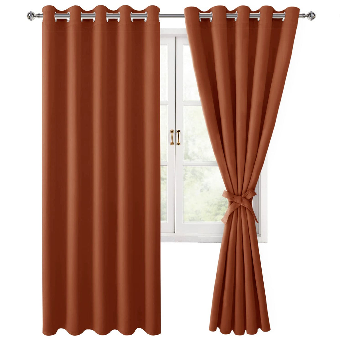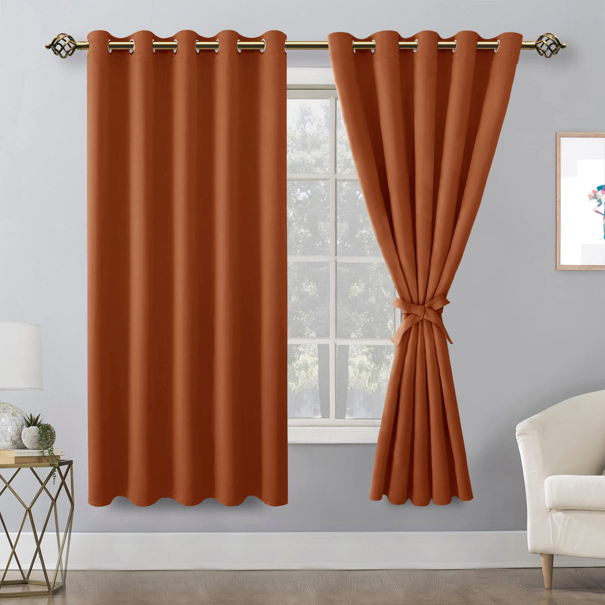 Hiasan Fall Grommet Blackout Curtains For Bedroom, 60 X 72 Inches - Thermal Insulated & Light Blocking Window Drapes For Living Room/Dorm Room, Set Of 2 Panels Sewn With Tiebacks, Burnt Ochre