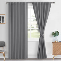 Hiasan Rod Pocket And Back Tab Blackout Curtains With 2 Tiebacks, Help Keep Your Curtains Open With Minimal Effort. You Can Reduce Extra&Nbsp;Expenses&Nbsp;For Your Window Treatments. To Tie The Two Ends Of The Tiebacks Together And Then Adjust It According To The Thickness Of Your Curtain. These Heavy Blackout Curtains Offer A Contemporary Solution For Holding Drapes Without The Need For Tools Or Drilling Holes Into Trim Or Walls.&Nbsp;Features: Block Out 85%-226% Sunlight And Uv Rays Thermal Insulated And Noise Reducing Thick And Privacy Protection Available In Various Sizes And Colors The Darker The Color, The Better The Blackout Performance&Nbsp;Easy Care: Machine Wash In Cold Water Tumble Dry On Low Low Heat Ironing Dont Bleach