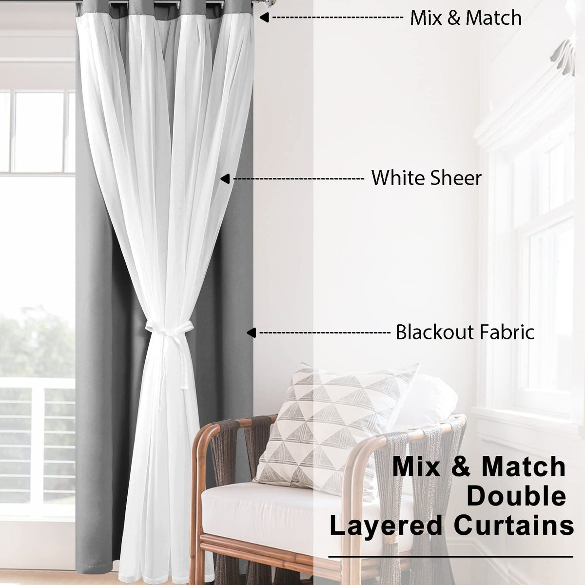 Hiasan Grey Blackout Curtains With Sheer Overlay, Grommet Thermal Insulated Privacy Mix & Match Double Layer Room Darkneing Curt