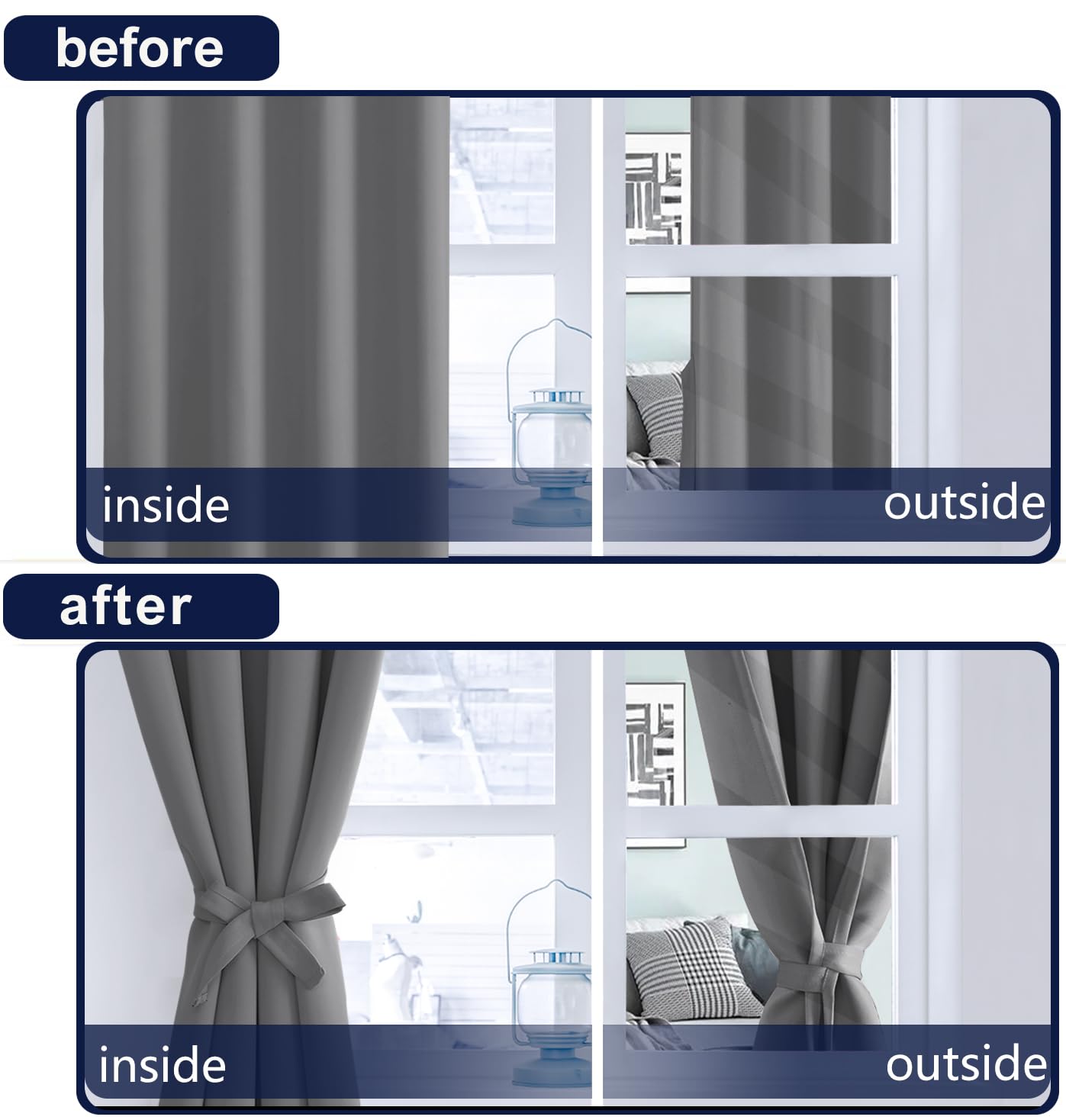 Hiasan Rod Pocket And Back Tab Blackout Curtains With 2 Tiebacks, Help Keep Your Curtains Open With Minimal Effort. You Can Reduce Extra&Nbsp;Expenses&Nbsp;For Your Window Treatments. To Tie The Two Ends Of The Tiebacks Together And Then Adjust It According To The Thickness Of Your Curtain. These Heavy Blackout Curtains Offer A Contemporary Solution For Holding Drapes Without The Need For Tools Or Drilling Holes Into Trim Or Walls.&Nbsp;Features: Block Out 85%-258% Sunlight And Uv Rays Thermal Insulated And Noise Reducing Thick And Privacy Protection Available In Various Sizes And Colors The Darker The Color, The Better The Blackout Performance&Nbsp;Easy Care: Machine Wash In Cold Water Tumble Dry On Low Low Heat Ironing Dont Bleach