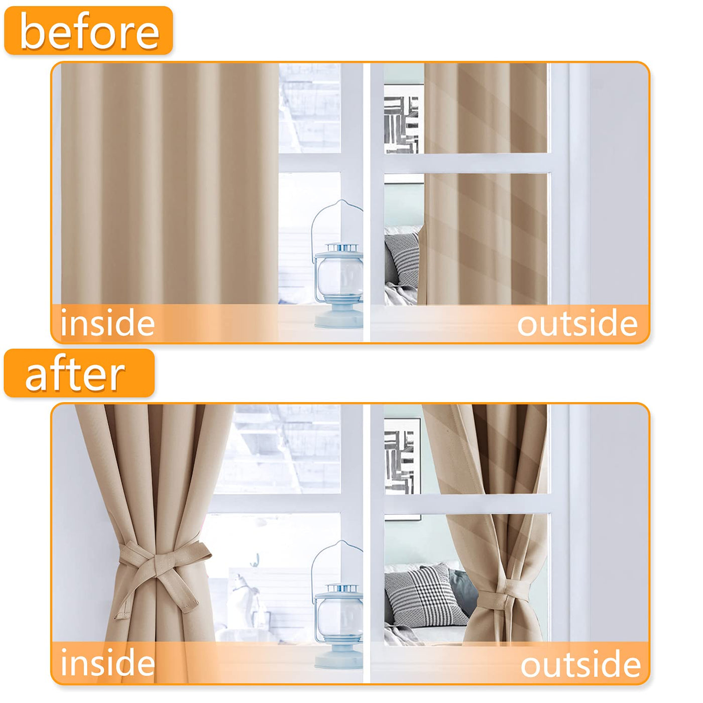 Blackout curtains with 2 tiebacks, help keep your curtains open with minimal effort. You can reduce extra expenses for your window treatments. To tie the two ends of the tiebacks together and then adjust it according to the thickness of your curtain. These heavy blackout curtains offer a contemporary solution for holding drapes without the need for tools or drilling holes into trim or walls.