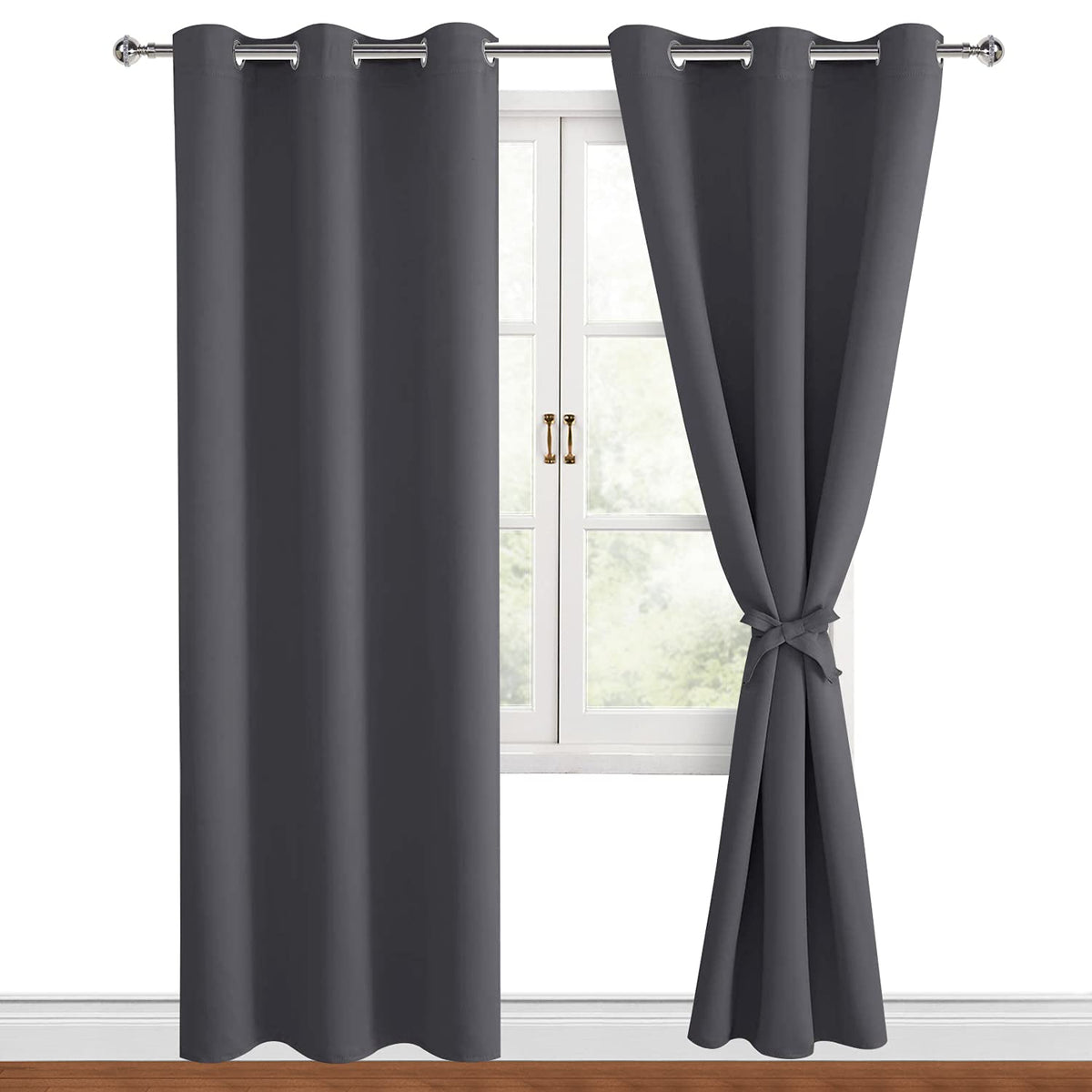 Hiasan Grommet Blackout Curtains For Bedroom, 38 X 84 Inches Long - Thermal Insulated & Light Blocking Window Curtains For Living Room, 2 Drape Panels Sewn With Tiebacks, Dark Grey