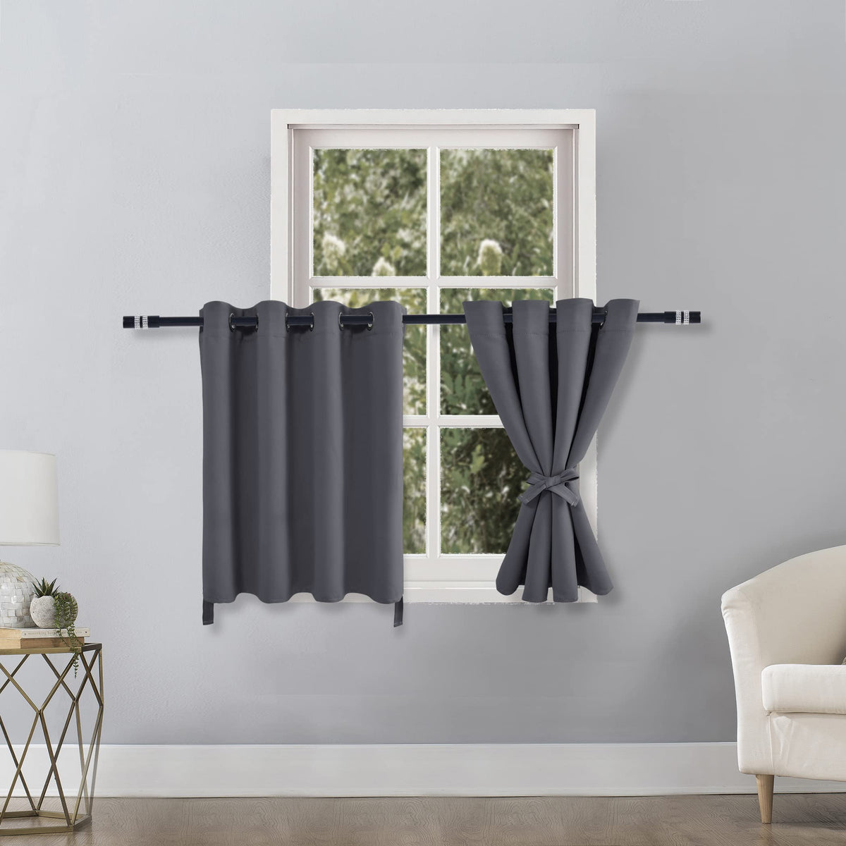 Hiasan Grommet Blackout Curtains For Bedroom, 52 X 30 Inches Long - Thermal Insulated & Light Blocking Window Curtains For Living Room, 2 Drape Panels Sewn With Tiebacks, Dark Grey