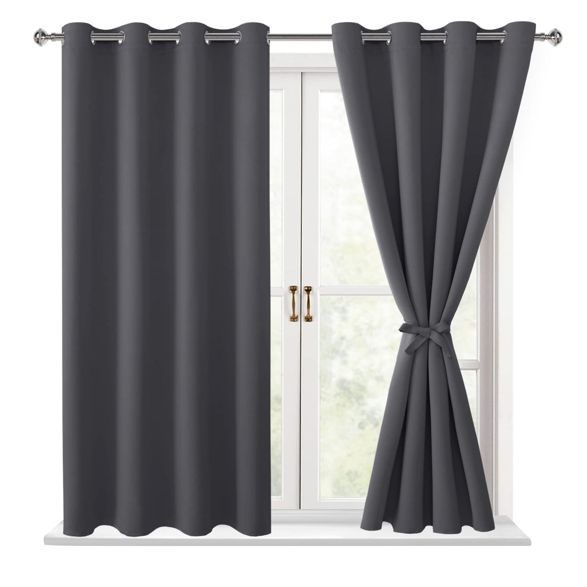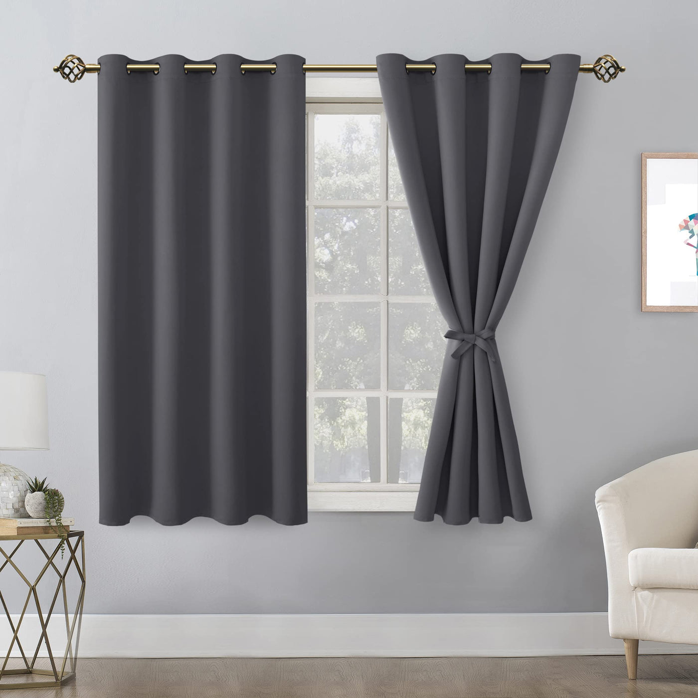 Hiasan Grommet Blackout Curtains For Bedroom, 52 X 54 Inches Long - Thermal Insulated & Light Blocking Window Curtains For Living Room, 2 Drape Panels Sewn With Tiebacks, Dark Grey