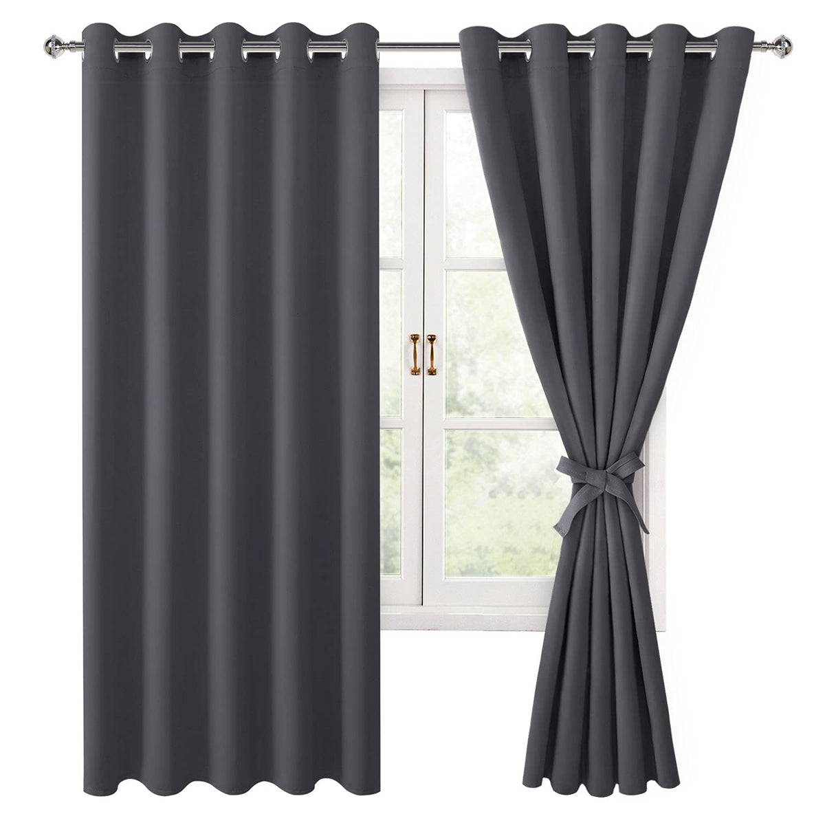 Hiasan Grommet Blackout Curtains For Bedroom, 60 X 72 Inches - Thermal Insulated & Light Blocking Window Drapes For Living Room/Dorm Room, Set Of 2 Panels Sewn With Tiebacks, Dark Grey