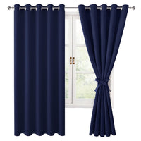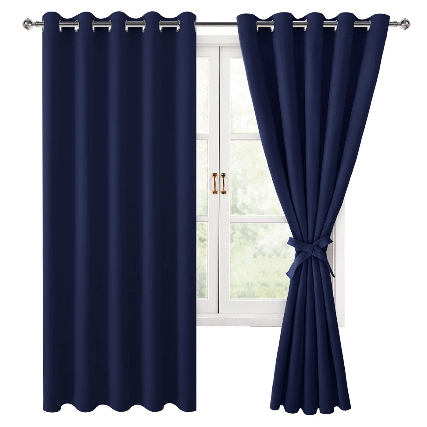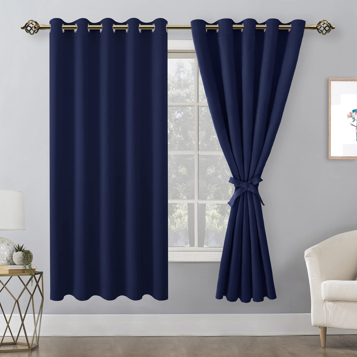 Hiasan Grommet Blackout Curtains For Bedroom, 60 X 72 Inches - Thermal Insulated & Light Blocking Window Drapes For Living Room/Dorm Room, Set Of 2 Panels Sewn With Tiebacks, Navy Blue