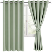 Hiasan Grommet Blackout Curtains For Bedroom, 60 X 72 Inches - Thermal Insulated & Light Blocking Window Drapes For Living Room/Dorm Room, Set Of 2 Panels Sewn With Tiebacks, Seafoam Green