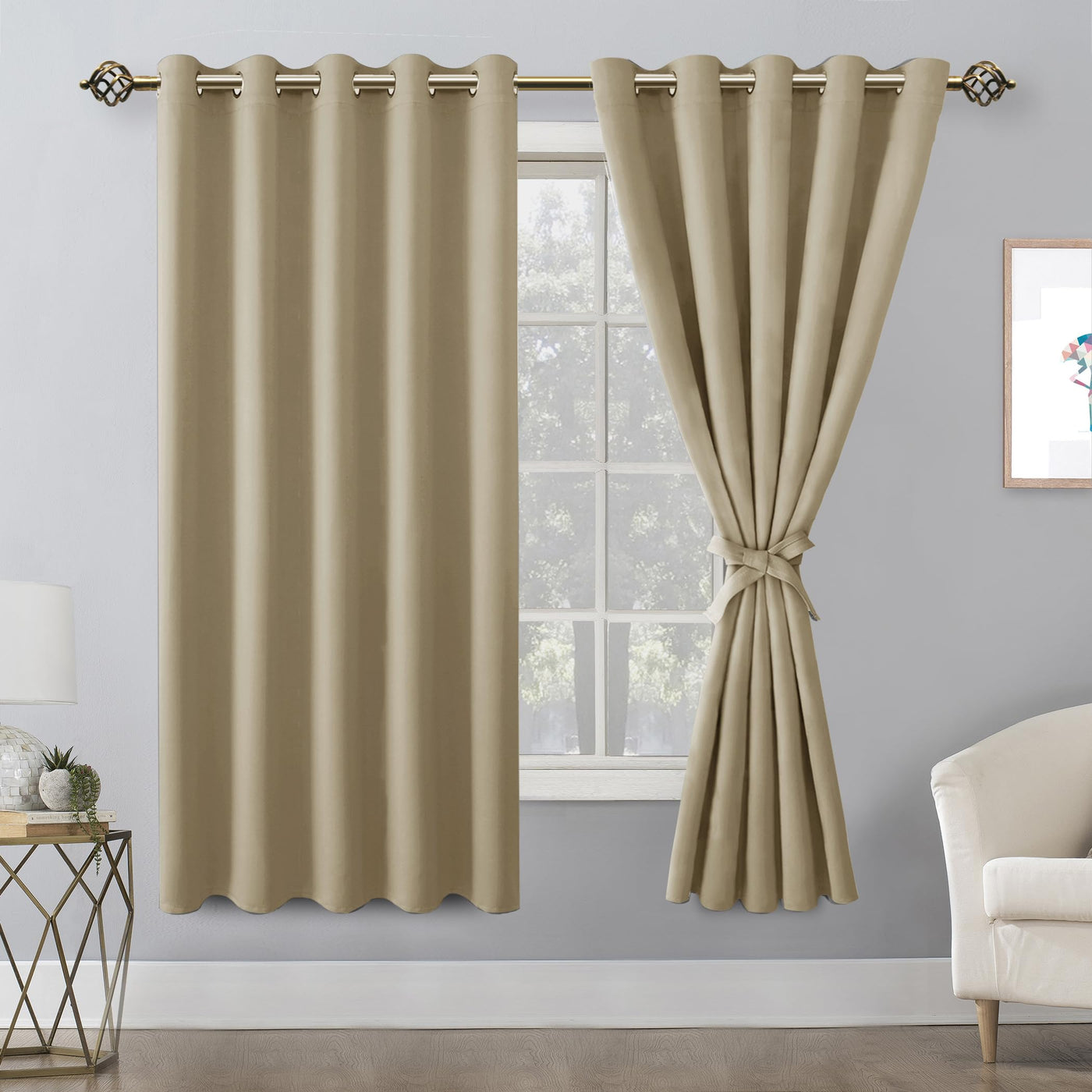 Hiasan Grommet Blackout Curtains For Bedroom, 60 X 72 Inches - Thermal Insulated & Light Blocking Window Drapes For Living Room/Dorm Room, Set Of 2 Panels Sewn With Tiebacks, Taupe