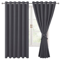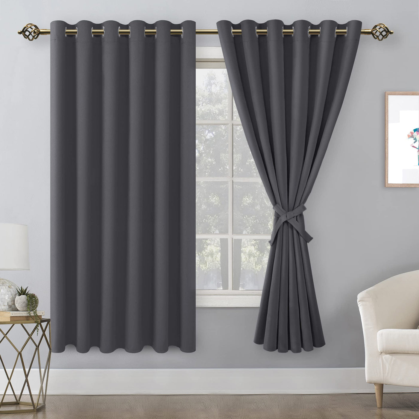 Hiasan Grommet Blackout Curtains For Bedroom, 70 X 63 Inches - Thermal Insulated & Light Blocking Window Drapes For Living Room/Dorm Room, Set Of 2 Panels Sewn With Tiebacks, Dark Grey
