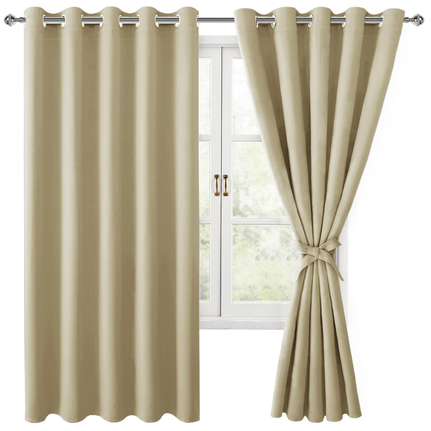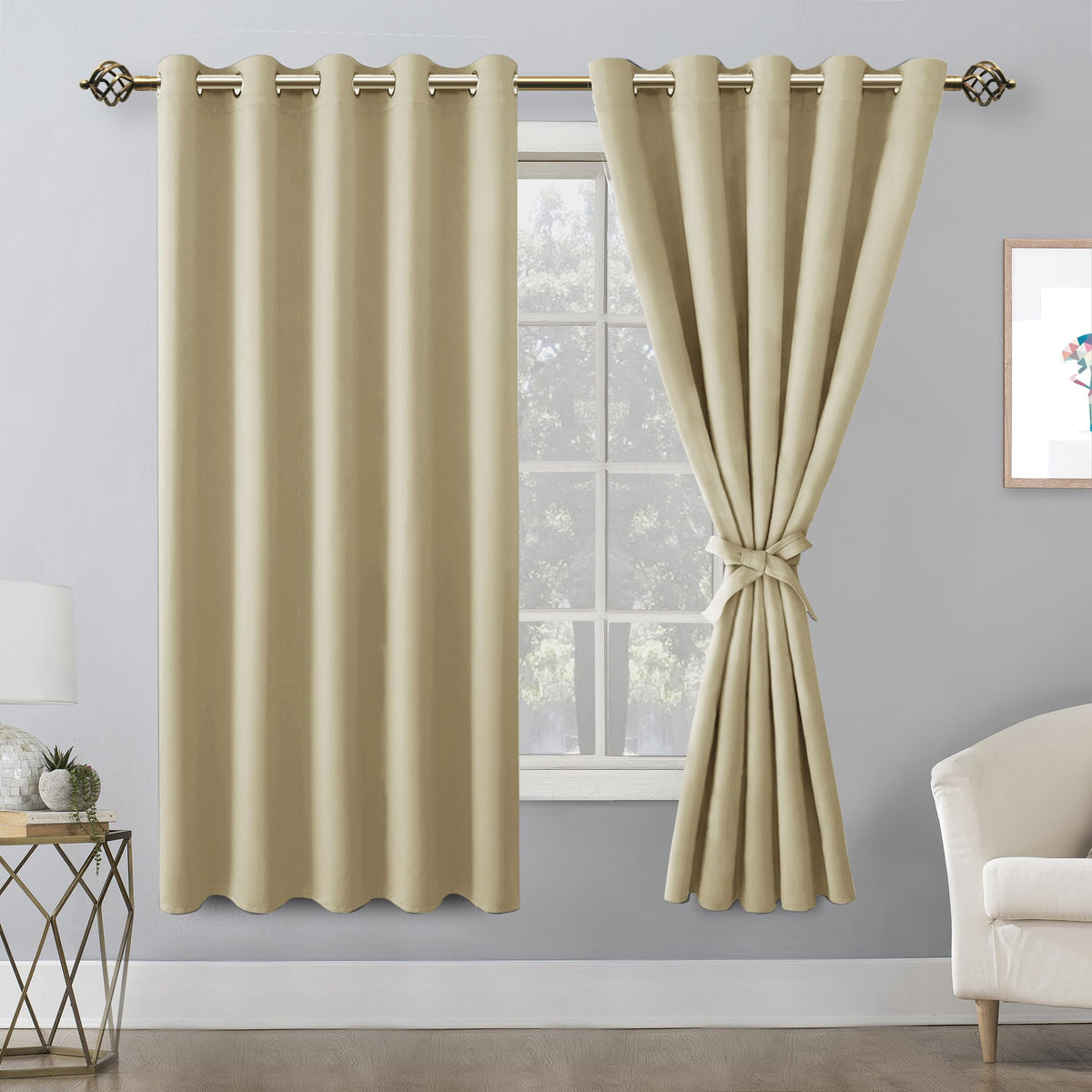 Hiasan Grommet Blackout Curtains For Bedroom, 70 X 63 Inches - Thermal Insulated & Light Blocking Window Drapes For Living Room/Dorm Room, Set Of 2 Panels Sewn With Tiebacks, Light Beige