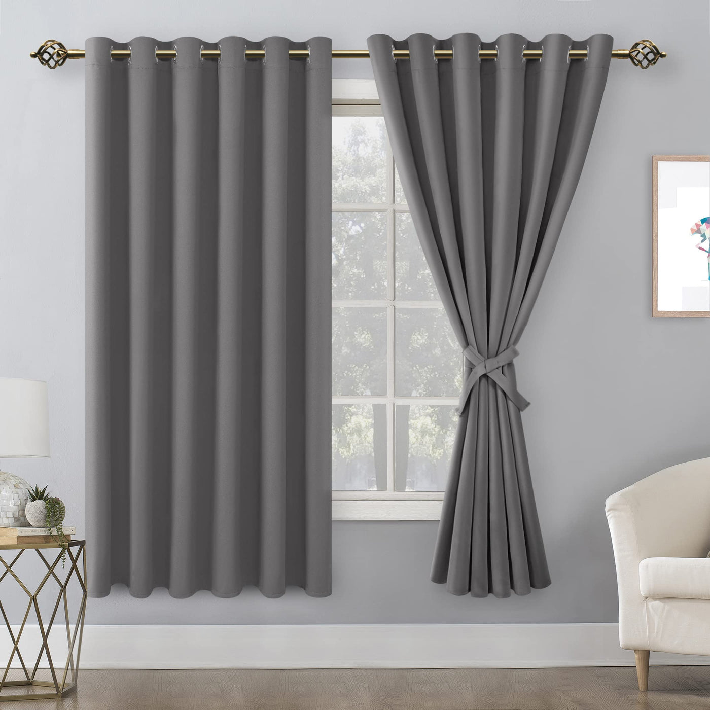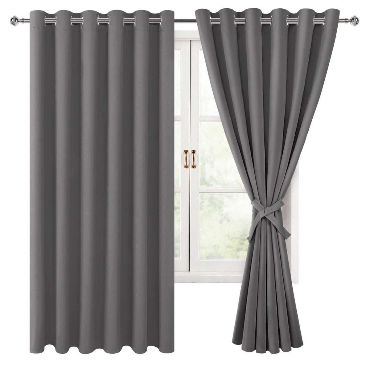 Blackout curtains with 2 tiebacks, help keep your curtains open with minimal effort. You can reduce extra expenses for your window treatments. To tie the two ends of the tiebacks together and then adjust it according to the thickness of your curtain. These new version blackout curtains offer a contemporary solution for holding drapes without the need for tools or drilling holes into trim or walls.