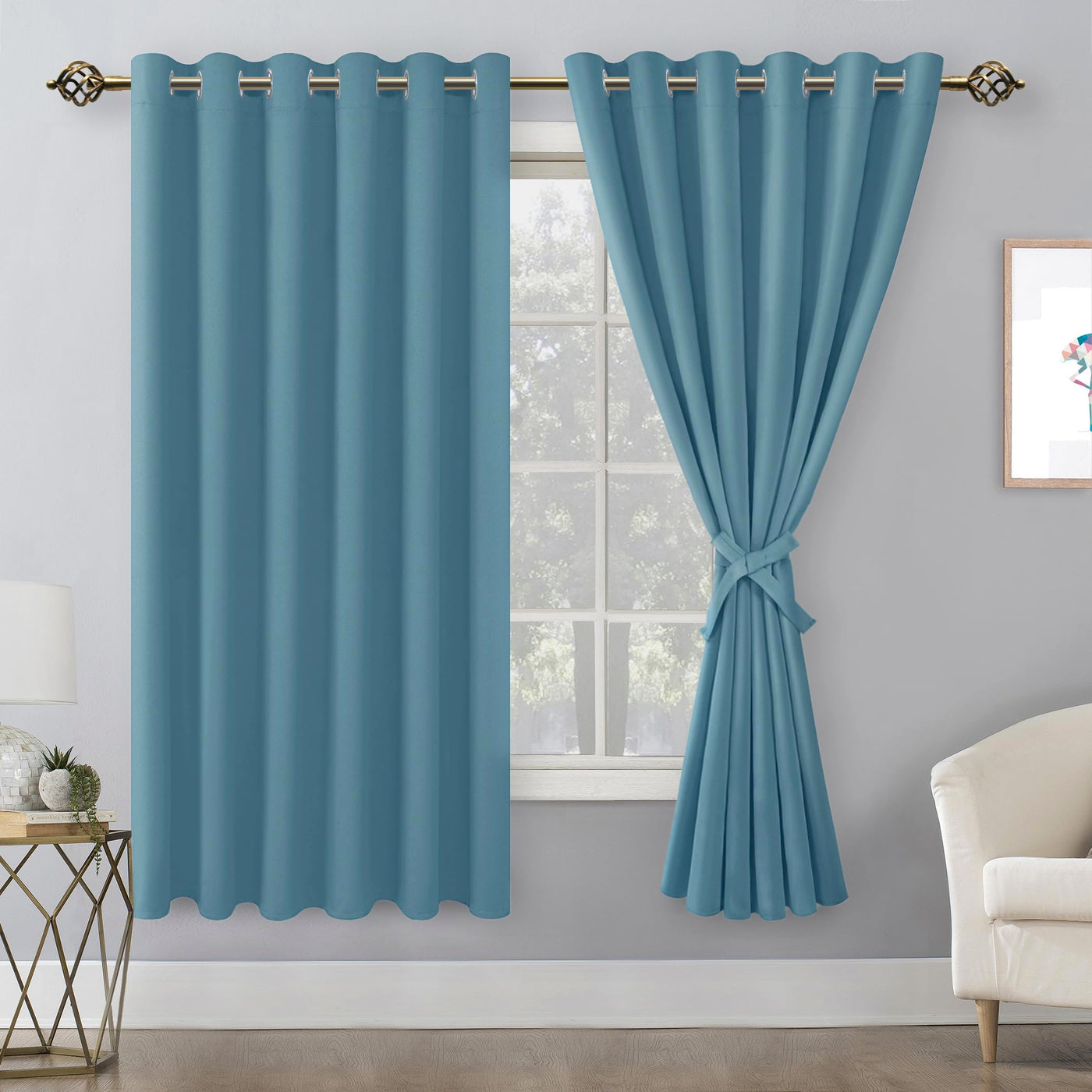 Hiasan Grommet Blackout Curtains For Bedroom, 70 X 63 Inches - Thermal Insulated & Light Blocking Window Drapes For Living Room/Dorm Room, Set Of 2 Panels Sewn With Tiebacks, Stone Blue