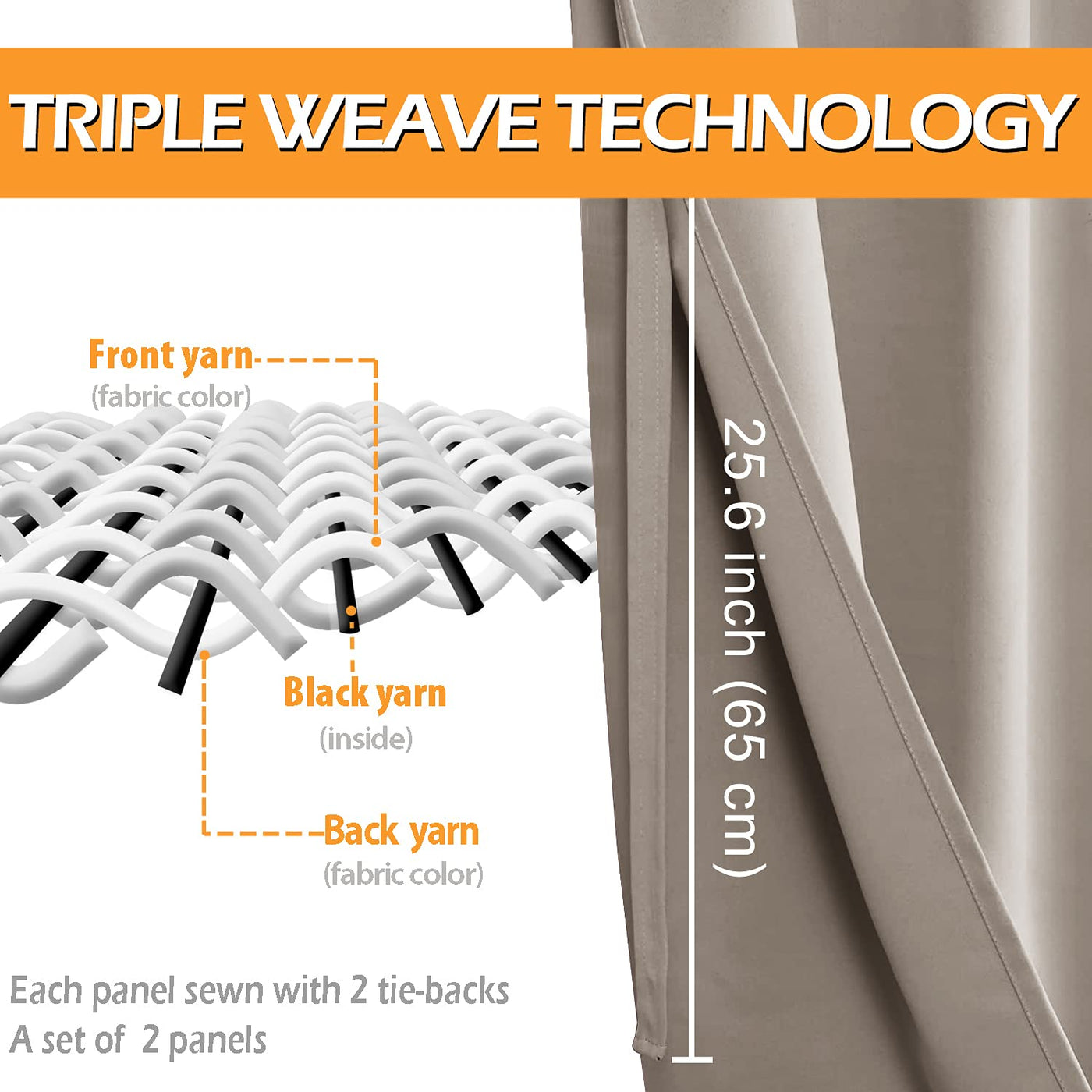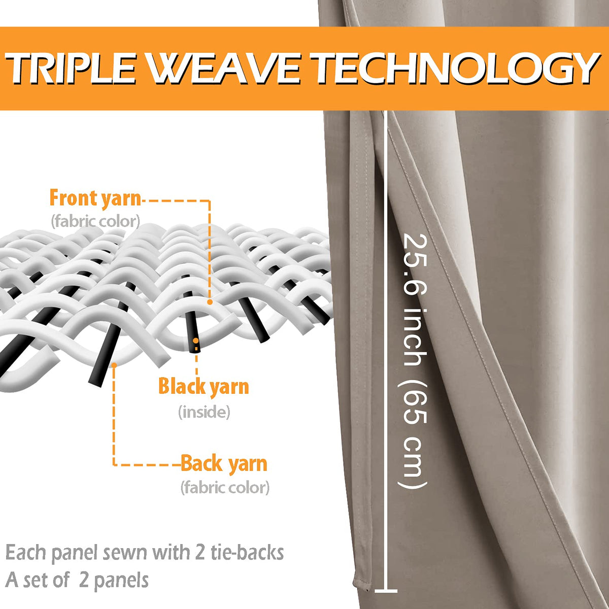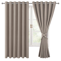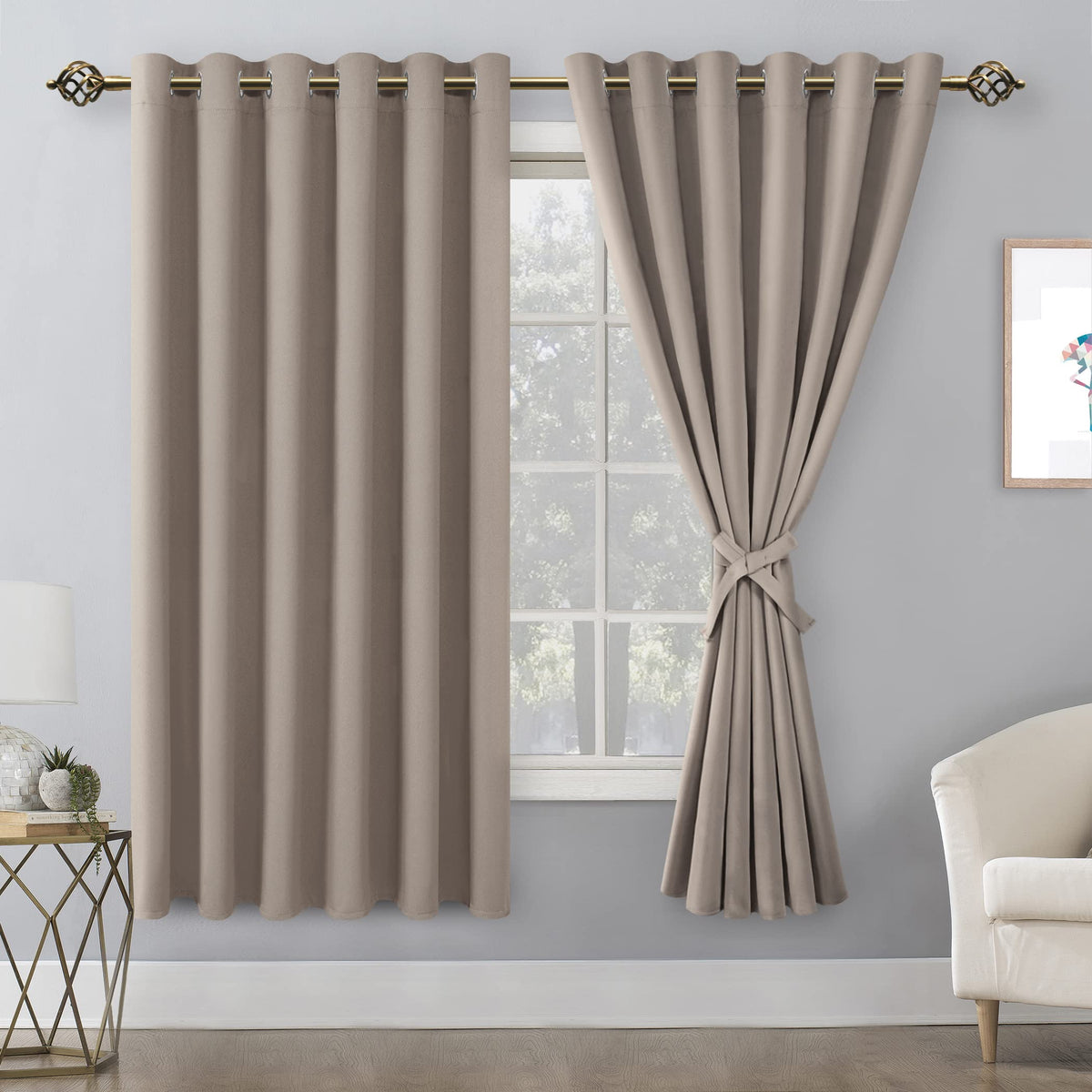 Hiasan Grommet Blackout Curtains For Bedroom, 70 X 63 Inches - Thermal Insulated & Light Blocking Window Drapes For Living Room/Dorm Room, Set Of 2 Panels Sewn With Tiebacks, Taupe