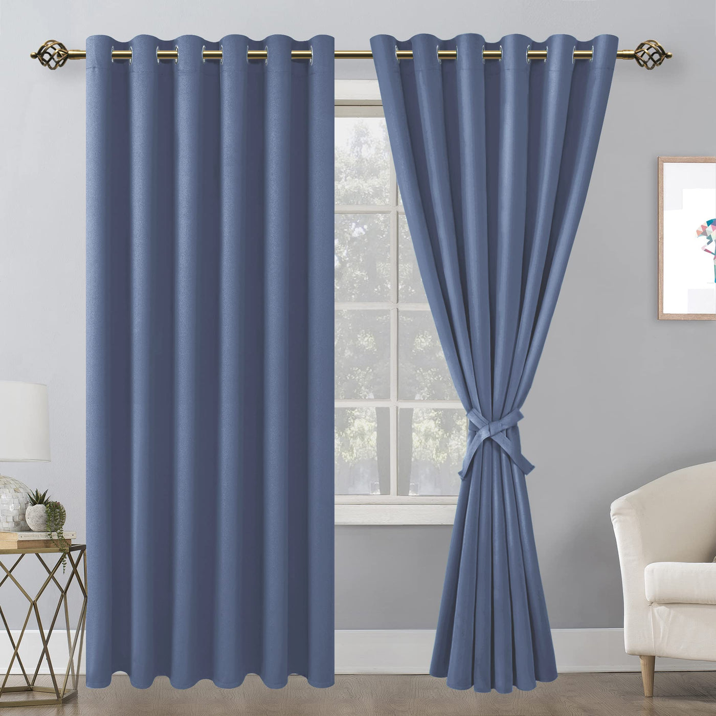 Hiasan Grommet Blackout Curtains For Bedroom, 70 X 84 Inches - Thermal Insulated & Light Blocking Window Drapes For Living Room/Dorm Room, Set Of 2 Panels Sewn With Tiebacks, Blue Haze