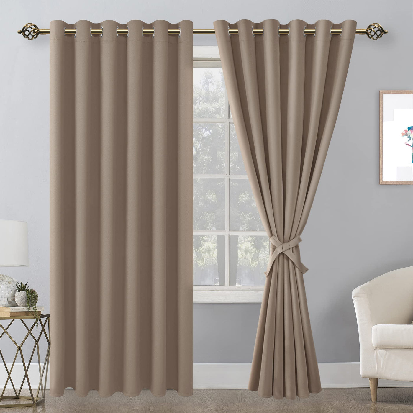 Hiasan Grommet Blackout Curtains For Bedroom, 70 X 84 Inches - Thermal Insulated & Light Blocking Window Drapes For Living Room/Dorm Room, Set Of 2 Panels Sewn With Tiebacks, Camel