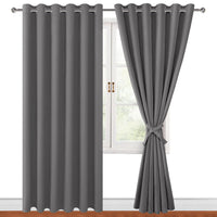 Hiasan Grommet Blackout Curtains For Bedroom, 70 X 84 Inches - Thermal Insulated & Light Blocking Window Drapes For Living Room/Dorm Room, Set Of 2 Panels Sewn With Tiebacks, Light Grey