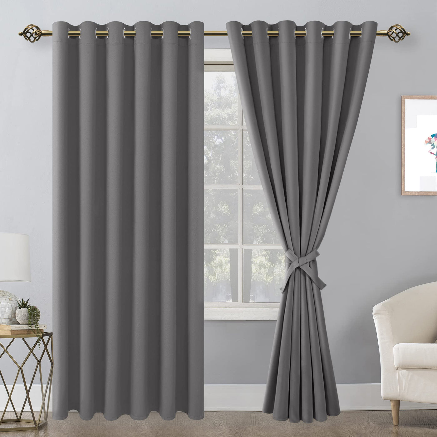 Blackout curtains with 2 tiebacks, help keep your curtains open with minimal effort. You can reduce extra expenses for your window treatments. To tie the two ends of the tiebacks together and then adjust it according to the thickness of your curtain. These new version blackout curtains offer a contemporary solution for holding drapes without the need for tools or drilling holes into trim or walls.