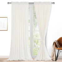 Hiasan Ivory White Velvet Curtains For Living Room - 96 Inches Long Light Blocking Soft Curtain Panels Privacy Rod Pocket Window