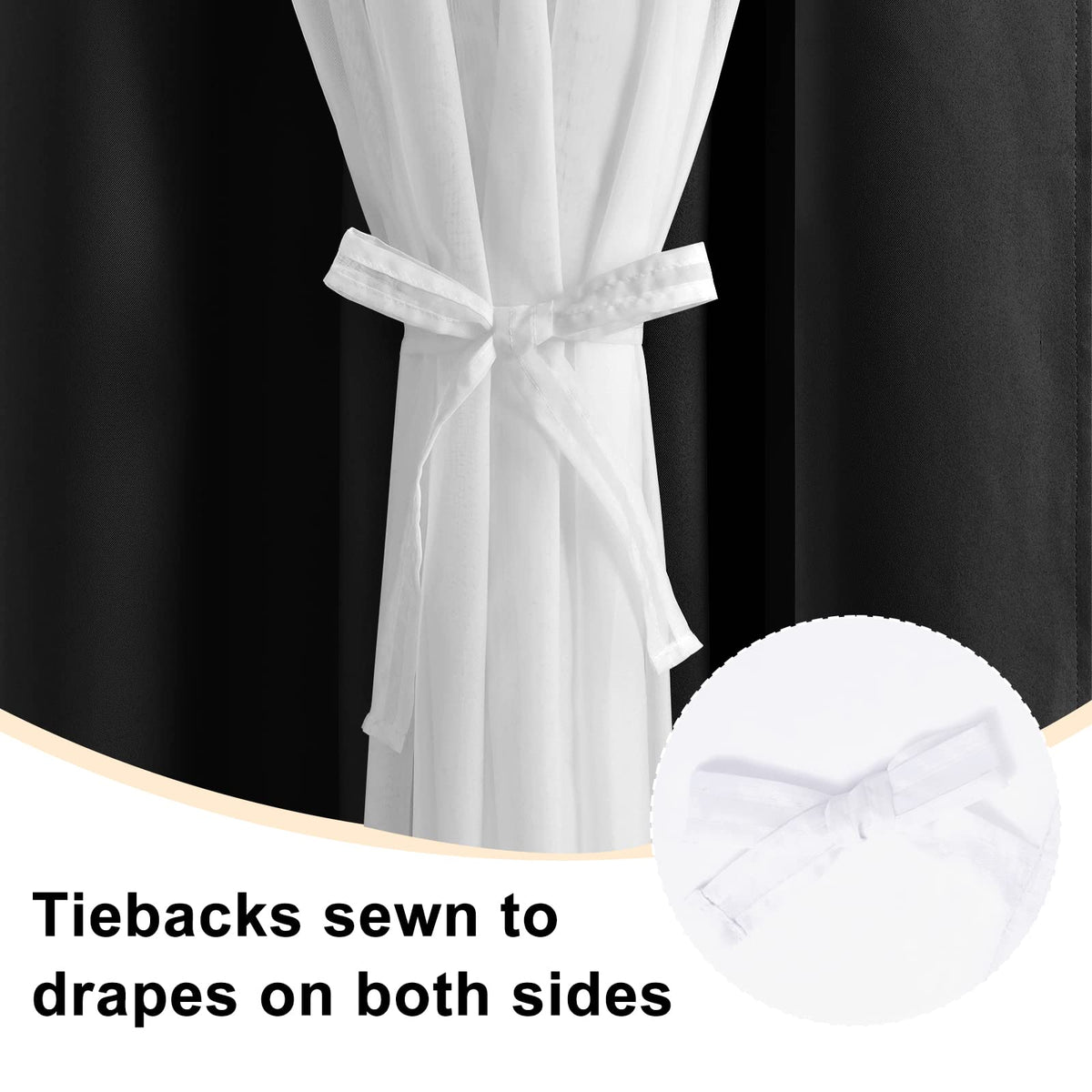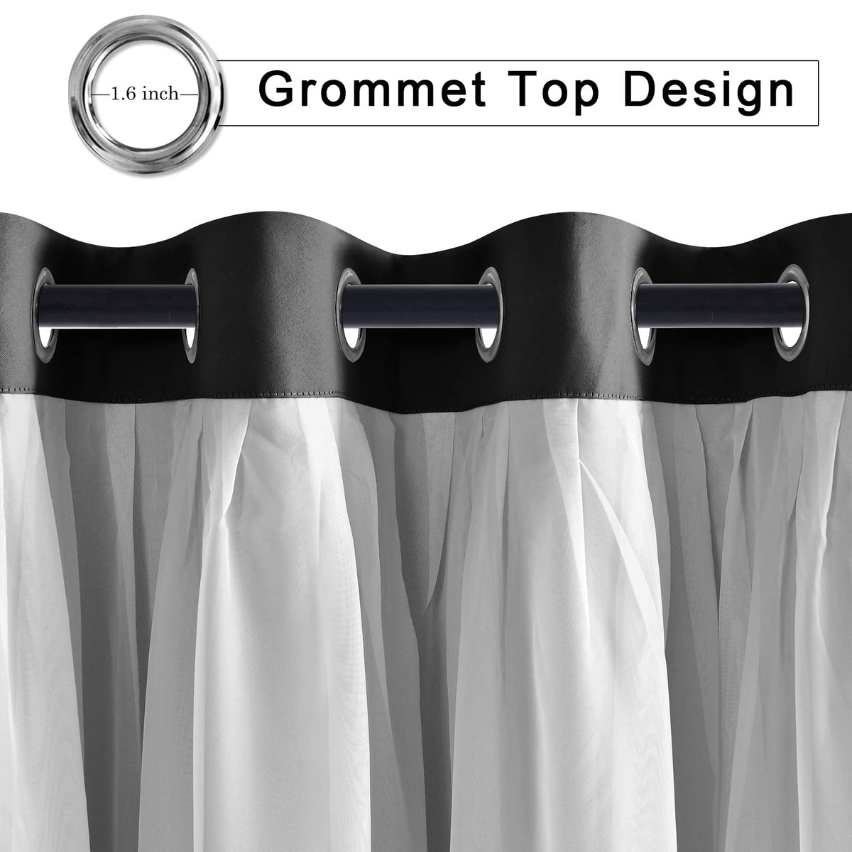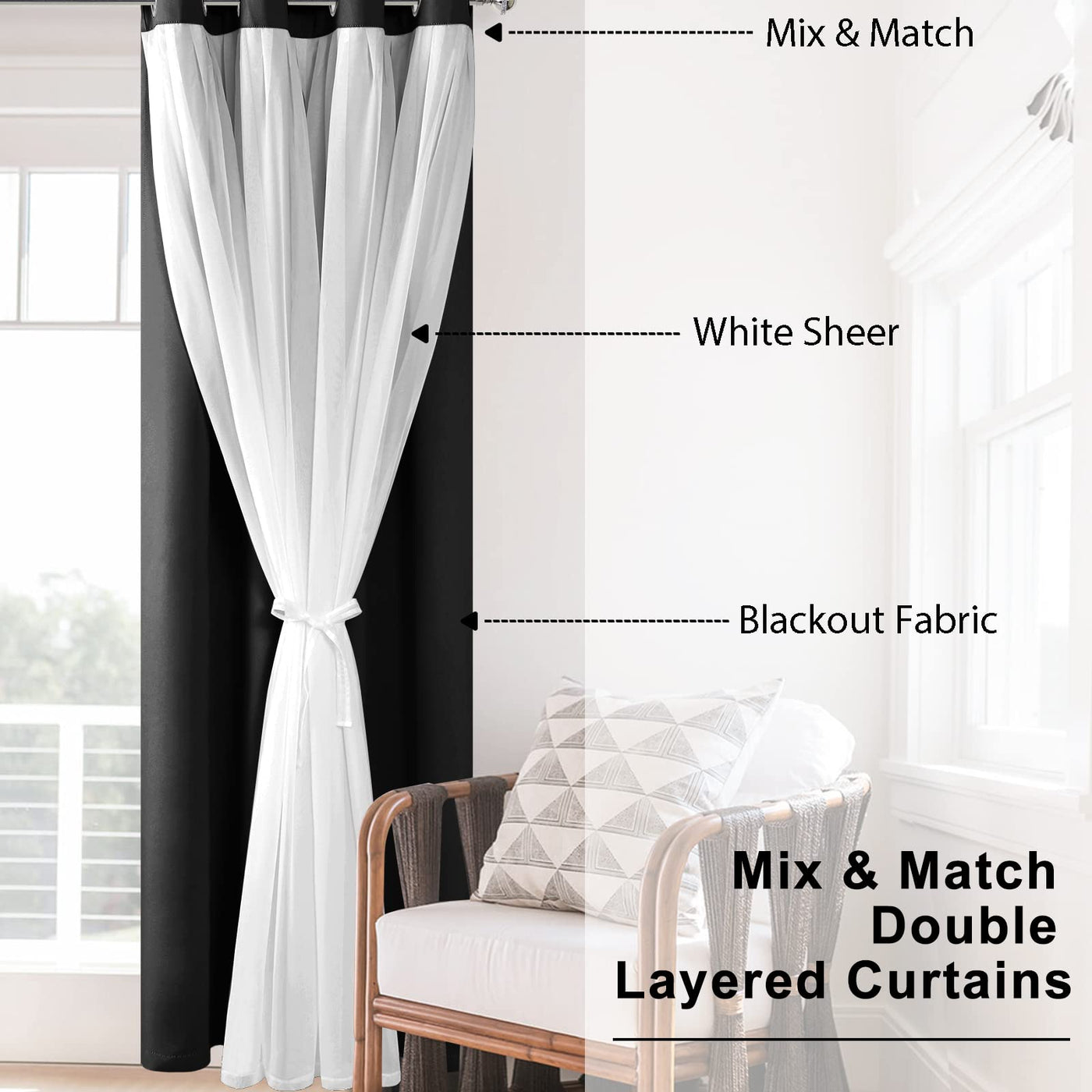 Hiasan Mix & Match Black Blackout Curtains With Sheer Overlay, Double Layer Thermal Insulated Room Darkening Curtains For Bedroo