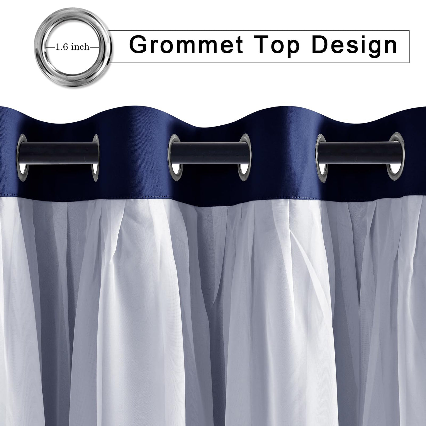 Hiasan Mix & Match Blackout Curtains With Sheer Overlay, Double Layer Extra Long Thermal Insulated Grommet Window Curtains For B