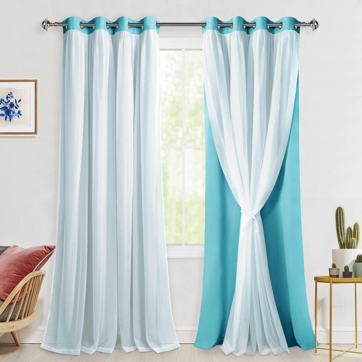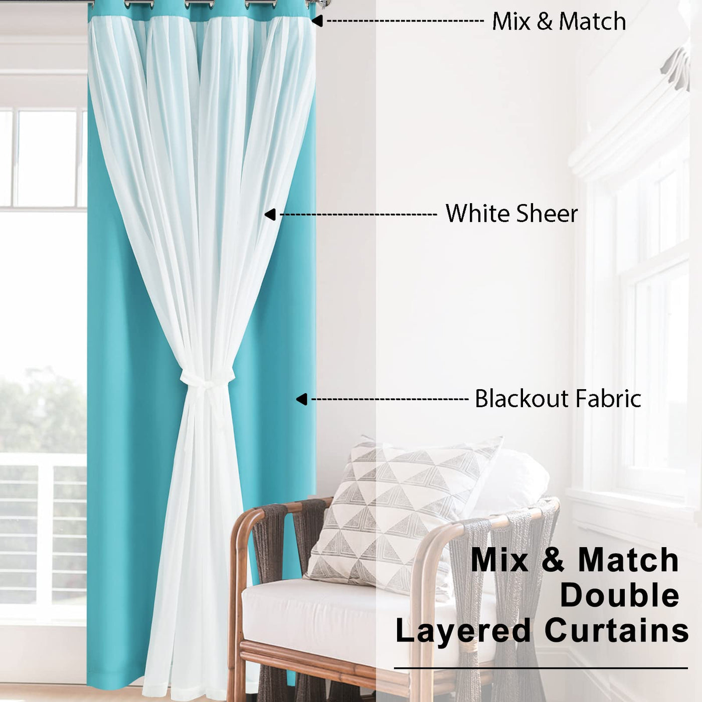Hiasan Mix & Match Blackout Curtains With Sheer Overlay, Double Layer Sun Blocking Thermal Insulated Grommet Window Curtains For