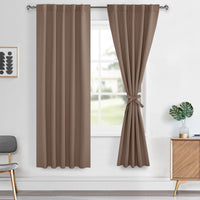 Hiasan Mocha Curtains 63 Inch Long Sewn With Tiebacks, Rod Pocket & Back Tab Blackout Thermal Insulated Drapes, Room Darkening C