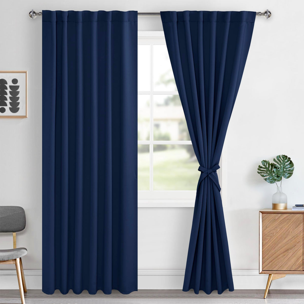 Hiasan Navy Blue Blackout Curtains 2 Panels For Bedroom, Back Tab & Rod Pocket Curtains 96 Inch Long Sewn With Tiebacks, Room Da