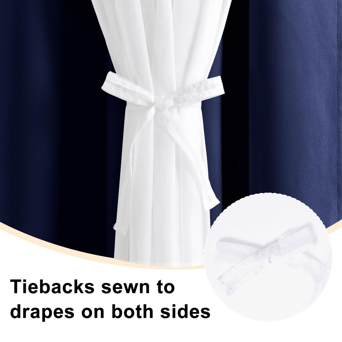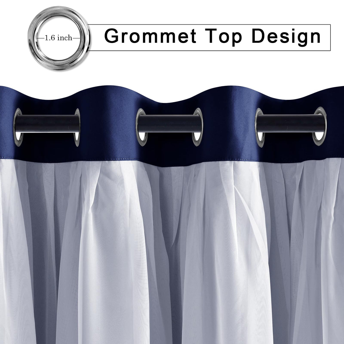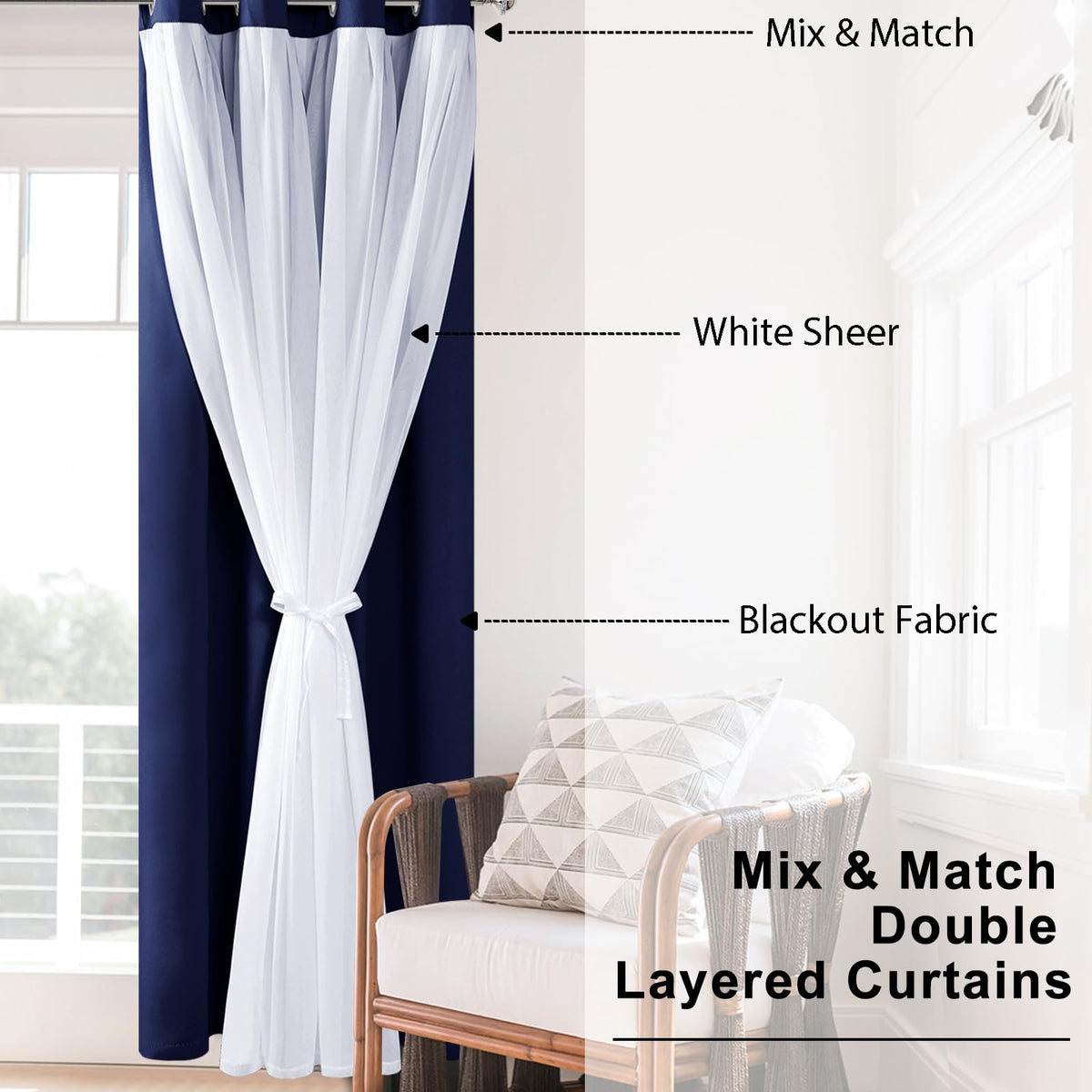 Hiasan Navy Blue Blackout Curtains With White Sheer Overlay, Mix & Match Double Layer Thermal Insulated Grommet Window Curtains