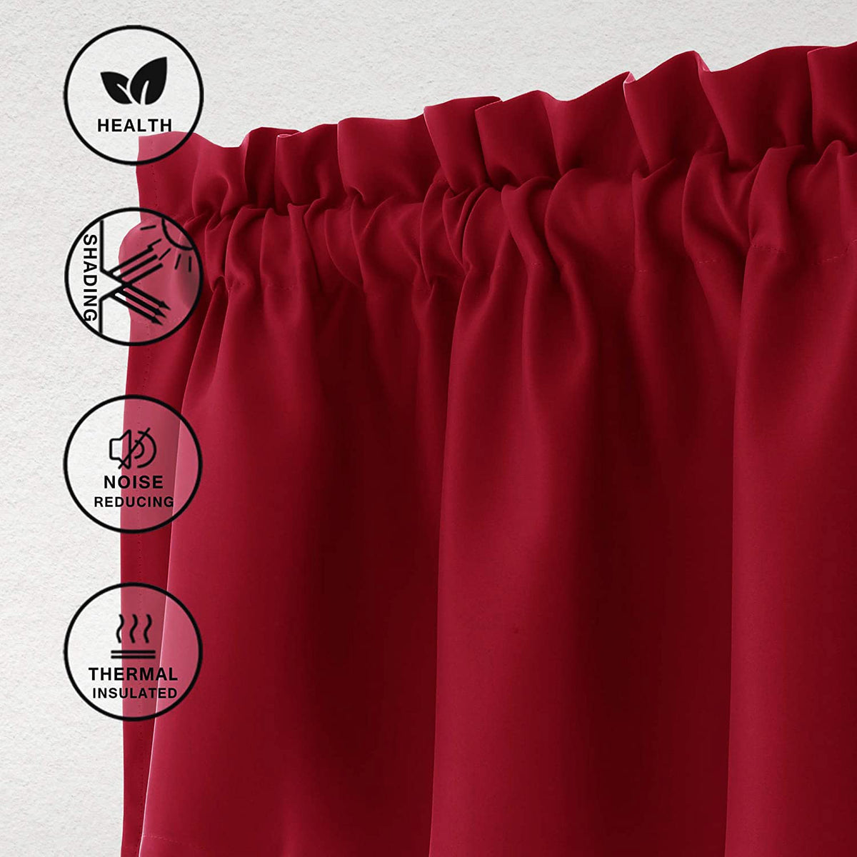 Hiasan Red Valance Curtains For Kitchen Blackout Thermal Insulated Rod Pocket Window Valances, 42 X 12 Inches Length, 1 Panel