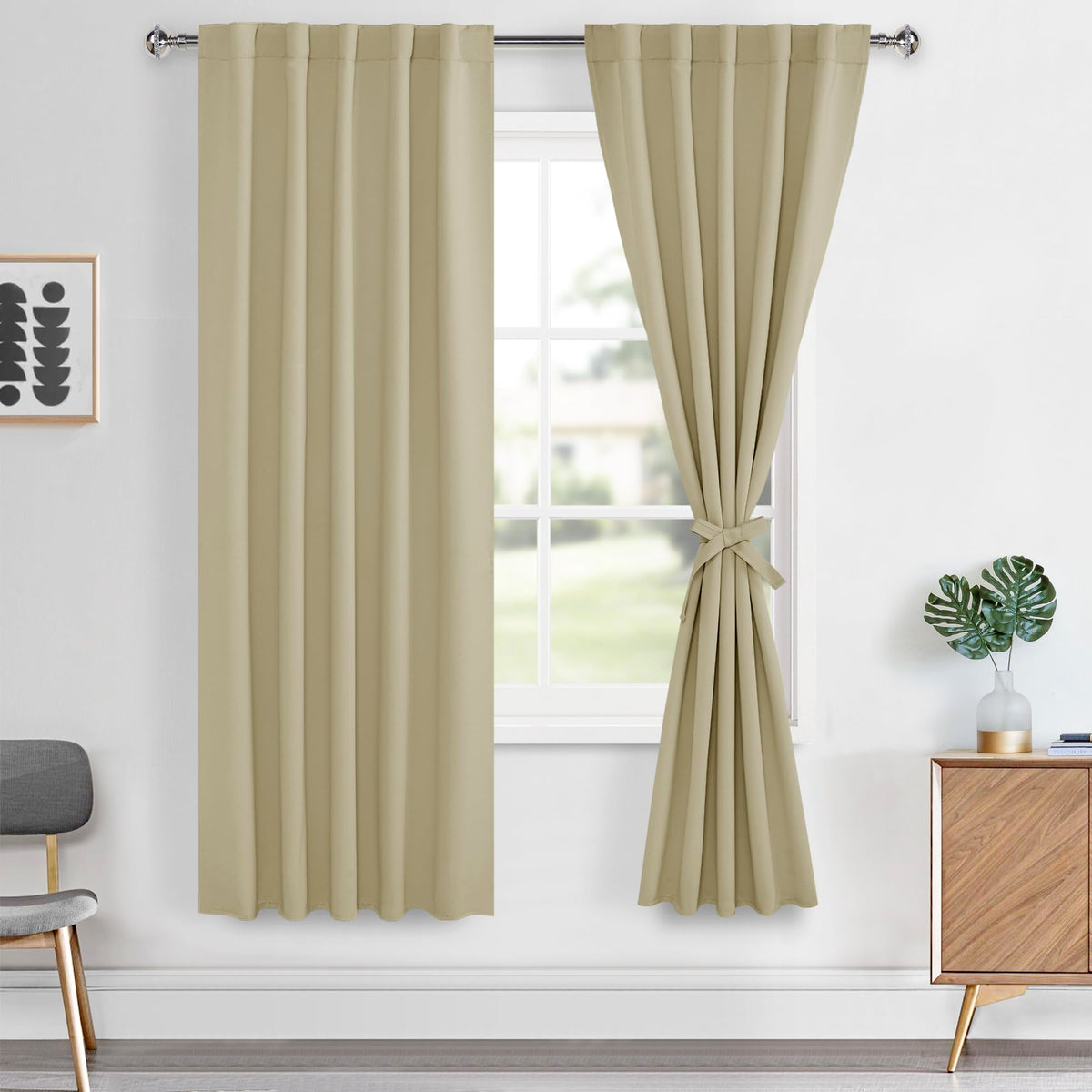 Hiasan Rod Pocket And Back Tab Blackout Curtains With 2 Tiebacks, Help Keep Your Curtains Open With Minimal Effort. You Can Reduce Extra&Nbsp;Expenses&Nbsp;For Your Window Treatments. To Tie The Two Ends Of The Tiebacks Together And Then Adjust It According To The Thickness Of Your Curtain. These Heavy Blackout Curtains Offer A Contemporary Solution For Holding Drapes Without The Need For Tools Or Drilling Holes Into Trim Or Walls.&Nbsp;Features: Block Out 85%-140% Sunlight And Uv Rays Thermal Insulated And Noise Reducing Thick And Privacy Protection Available In Various Sizes And Colors The Darker The Color, The Better The Blackout Performance&Nbsp;Easy Care: Machine Wash In Cold Water Tumble Dry On Low Low Heat Ironing Dont Bleach