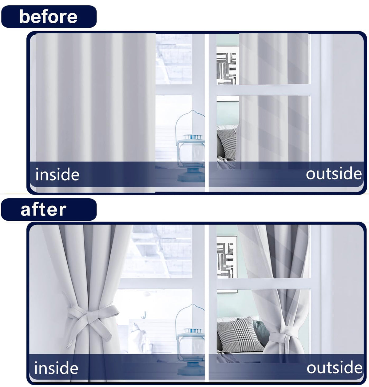Q: Do these curtains provide blackout capabilities?A: Yes, these blackout curtains can block 85%-98% of sunlight, especially the darker colors. They are designed to help create a peaceful environment for sleeping or relaxing.