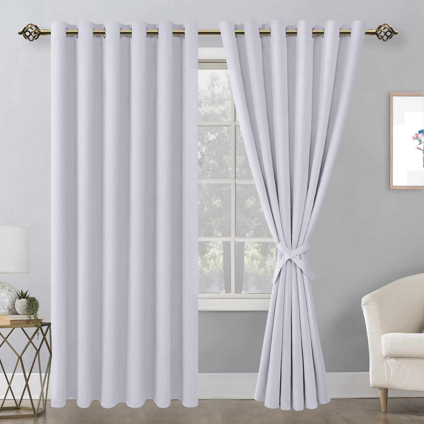 Hiasan Room Darkening Curtains For Bedroom, 70 X 84 Inches - Thermal Insulated & Energy Saving Window Drapes For Living Room/Dorm Room, Set Of 2 Panels Sewn With Tiebacks, Greyish White