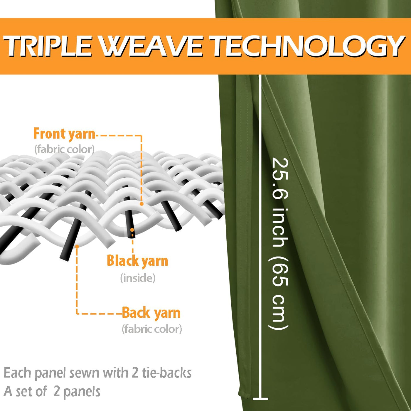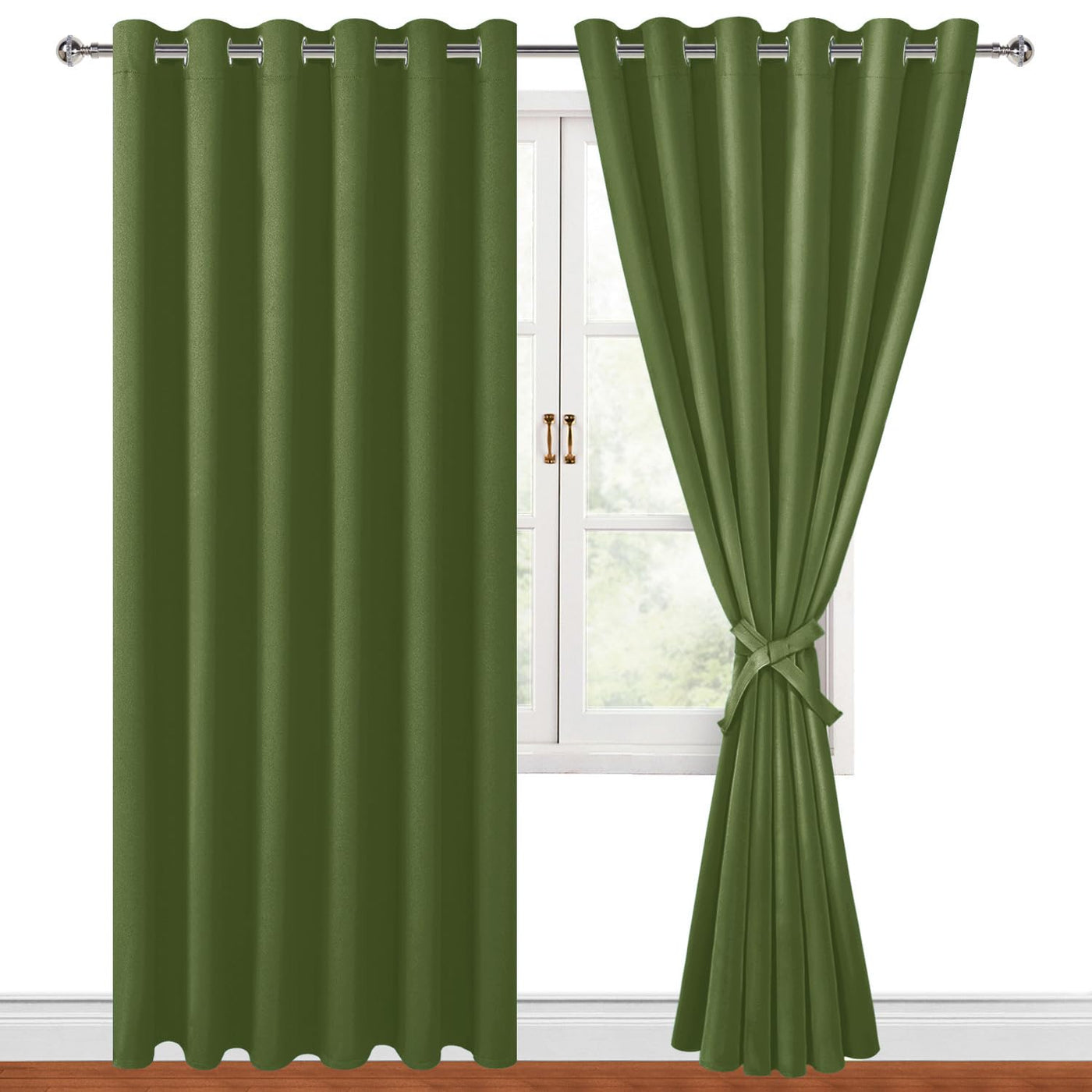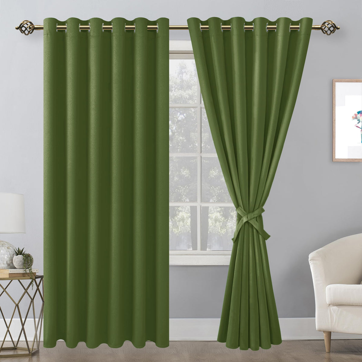 Hiasan Room Darkening Curtains For Bedroom, 70 X 84 Inches - Thermal Insulated & Energy Saving Window Drapes For Living Room/Dorm Room, Set Of 2 Panels Sewn With Tiebacks, Olive Green