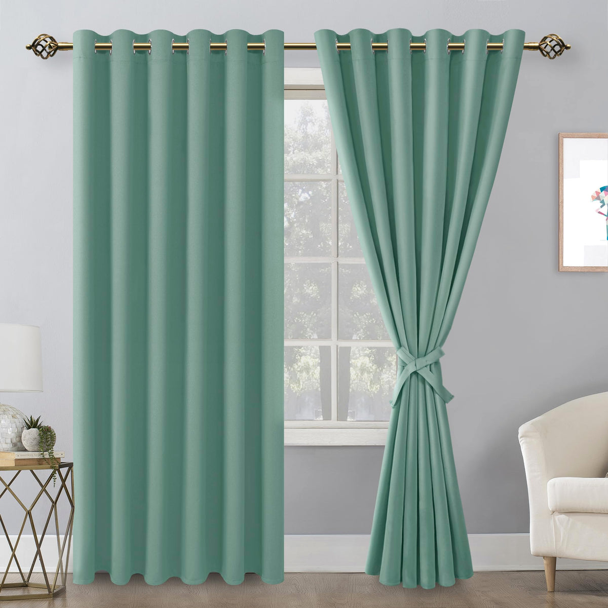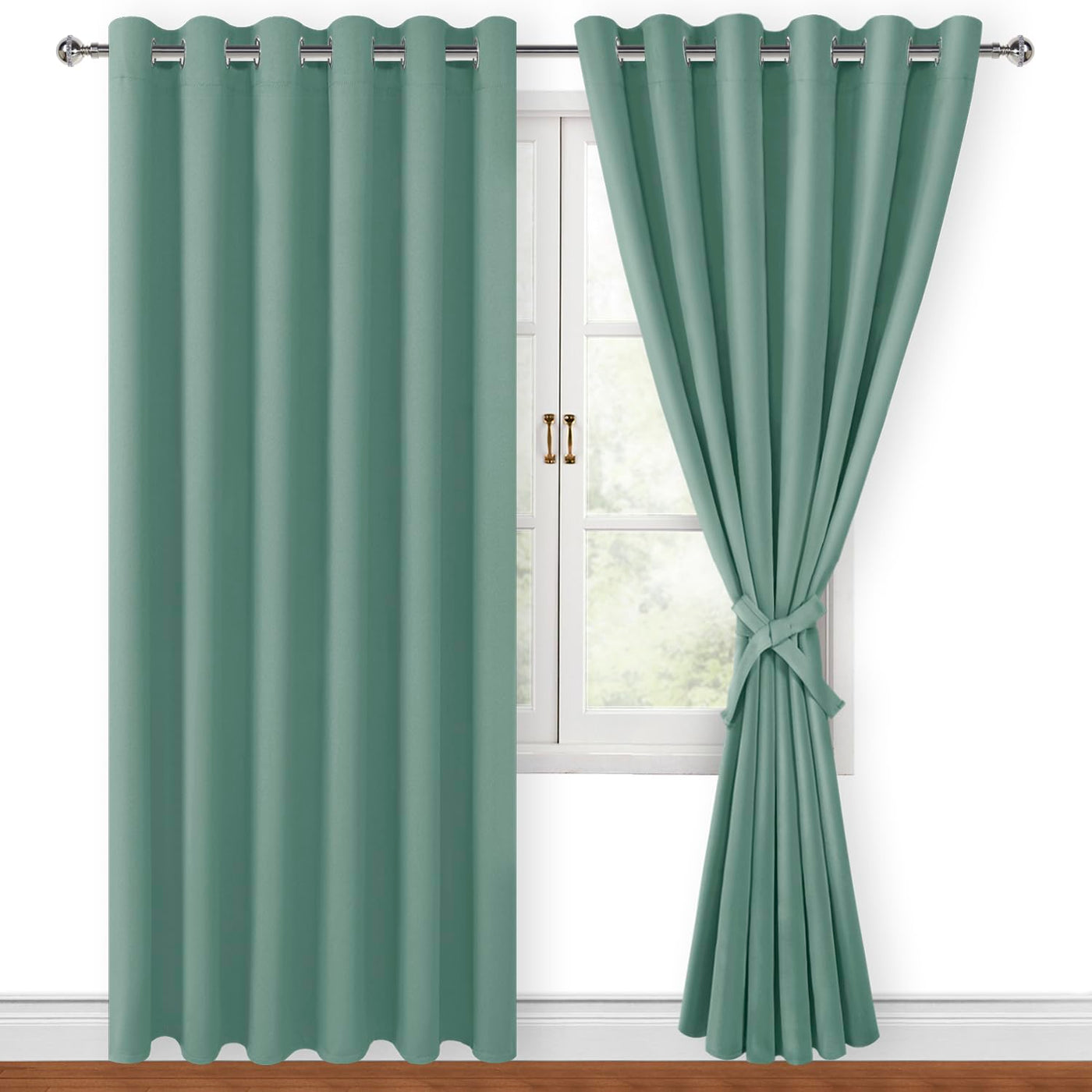 Hiasan Room Darkening Curtains For Bedroom, 70 X 84 Inches - Thermal Insulated & Energy Saving Window Drapes For Living Room/Dorm Room, Set Of 2 Panels Sewn With Tiebacks, Sage Green