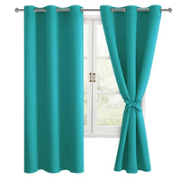 Hiasan Room Darkening Curtains For Bedroom, Noise Reducing, Energy Saving Blackout Window Curtain Panels, Sewn With Tiebacks, Set Of 2, Grommet Top (Peacock Teal, Width 42 Inch X Length 72 Inch)