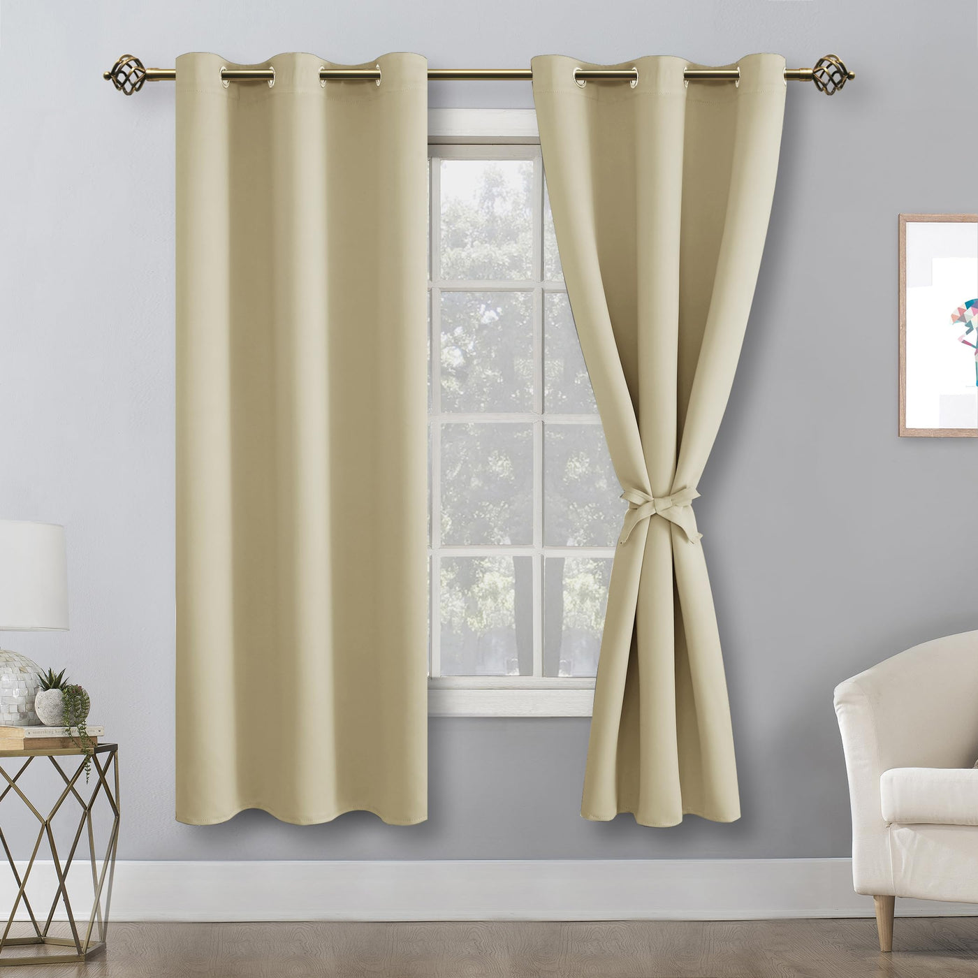 Hiasan Room Darkening Window Curtain Panels, Light Blocking, Noise Reducing Blackout Curtains, Tiebacks Included, Set Of 2, Grommet Top (Light Beige, Width 38 Inch X Length 72 Inch)