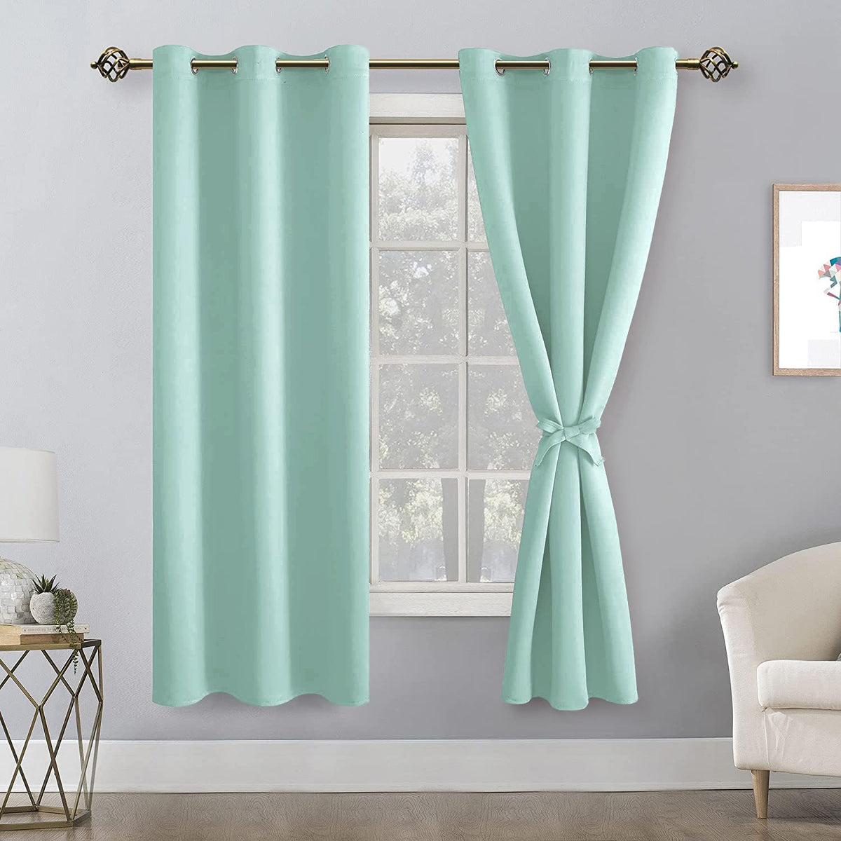 Hiasan Room Darkening Window Curtains For Bedroom, Thermal Insulated, Energy Saving Blackout Curtains, Set Of 2 Panels, Sewn With Tiebacks, Grommet Top (Aqua, Width 38 Inch X Length 63 Inch)