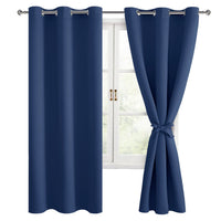 Hiasan Room Darkening Window Curtains For Bedroom, Thermal Insulated, Energy Saving Blackout Curtains, Set Of 2 Panels, Sewn With Tiebacks, Grommet Top (Navy, Width 42 Inch X Length 63 Inch)