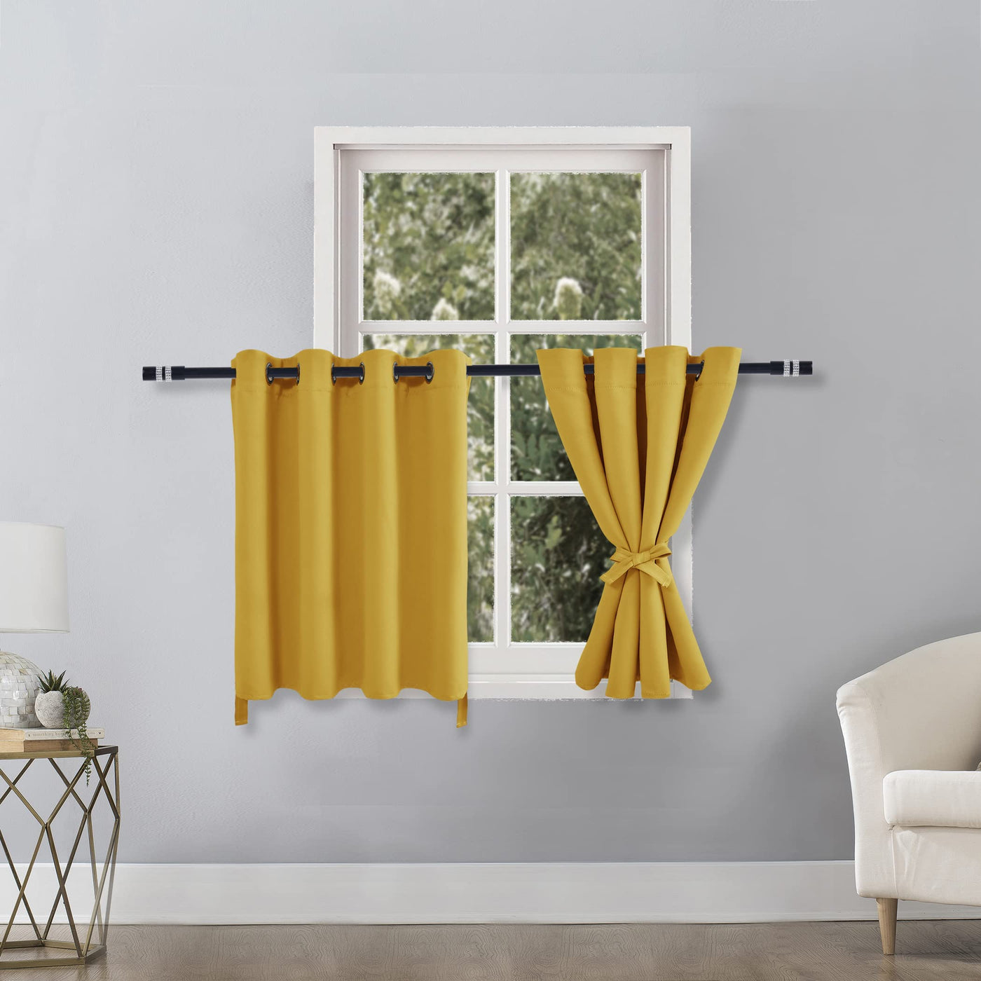 Hiasan Rv Blackout Curtains For Bedroom, 52 X 30 Inches Long - Thermal Insulated & Light Blocking Window Curtains For Living Room, 2 Drape Panels Sewn With Tiebacks, Mustard Yellow
