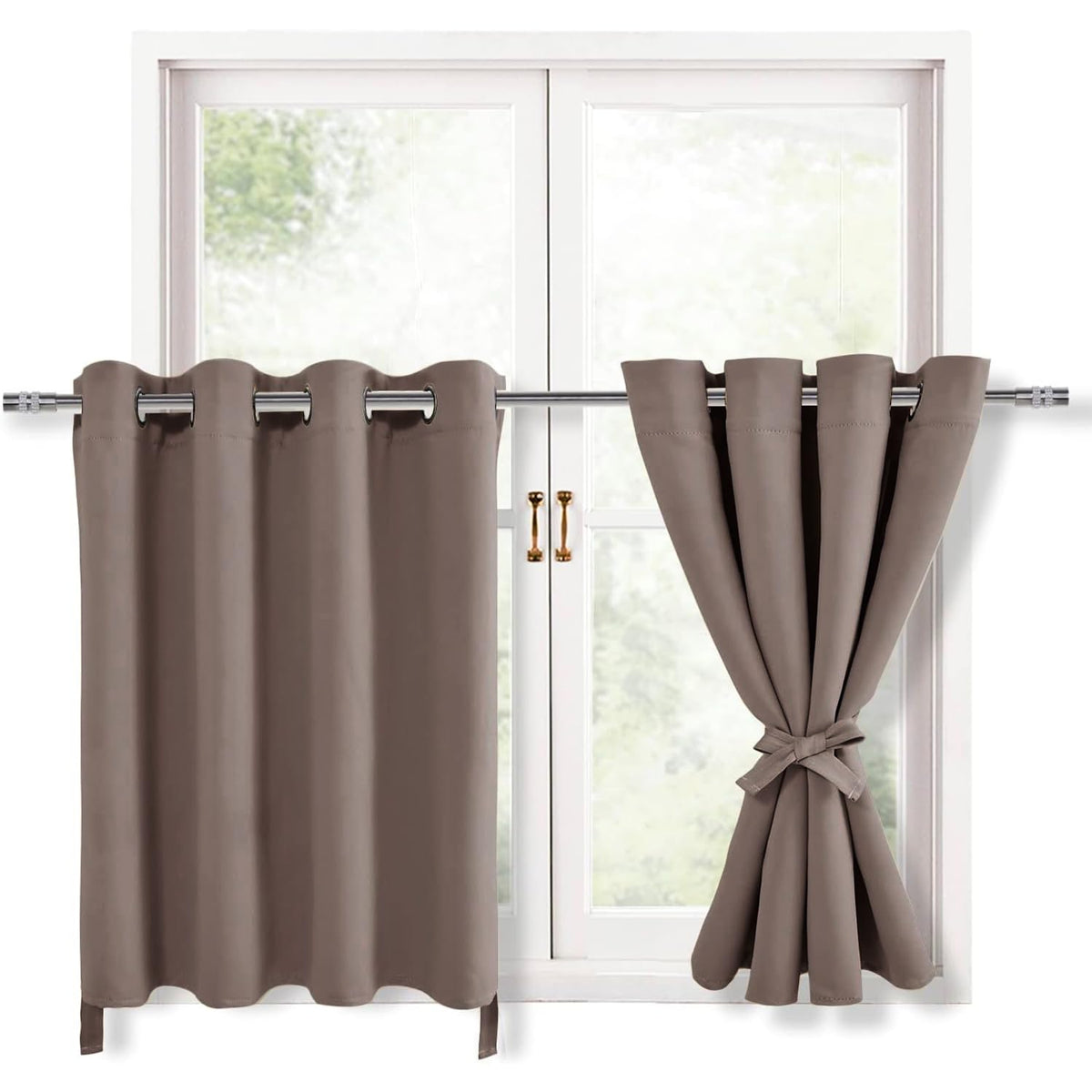 Hiasan Rv Blackout Curtains For Bedroom, 52 X 30 Inches Long - Thermal Insulated & Light Blocking Window Curtains For Living Room/Kids Room, 2 Drape Panels Sewn With Tiebacks, Tan