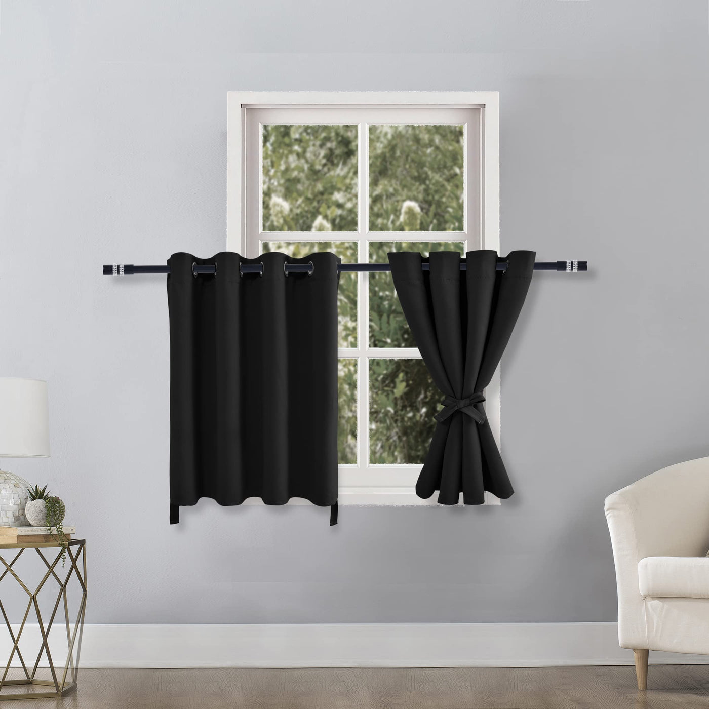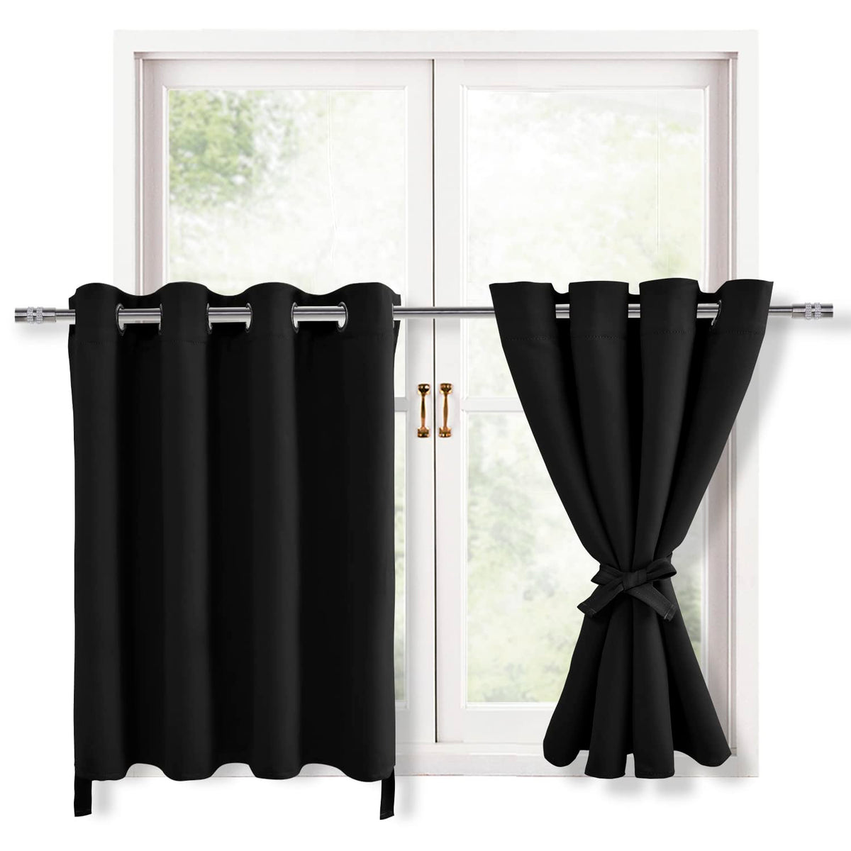 Hiasan Rv Blackout Curtains For Bedroom, 52 X 36 Inches Long - Thermal Insulated & Light Blocking Window Curtains For Living Room, 2 Drape Panels Sewn With Tiebacks, Black