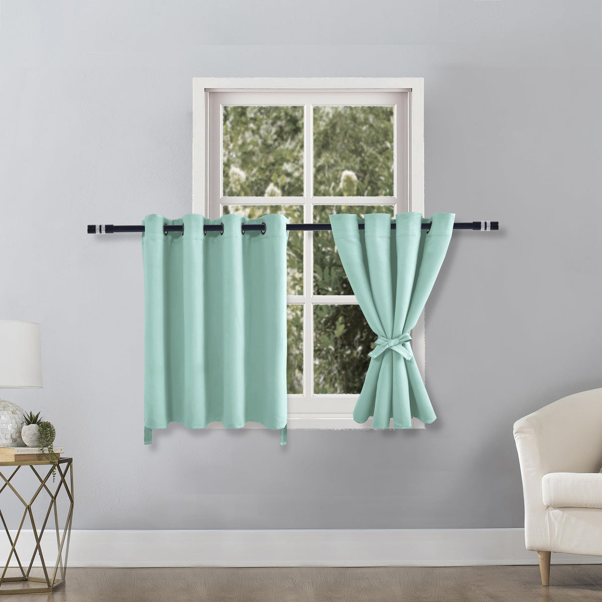 Blackout curtains with 2 tiebacks, help keep your curtains open with minimal effort. You can reduce extra expenses for your window treatments. To tie the two ends of the tiebacks together and then adjust it according to the thickness of your curtain. These new version blackout curtains offer a contemporary solution for holding drapes without the need for tools or drilling holes into trim or walls.